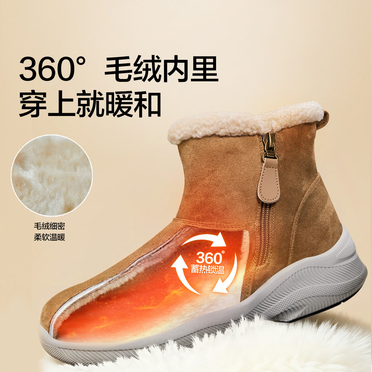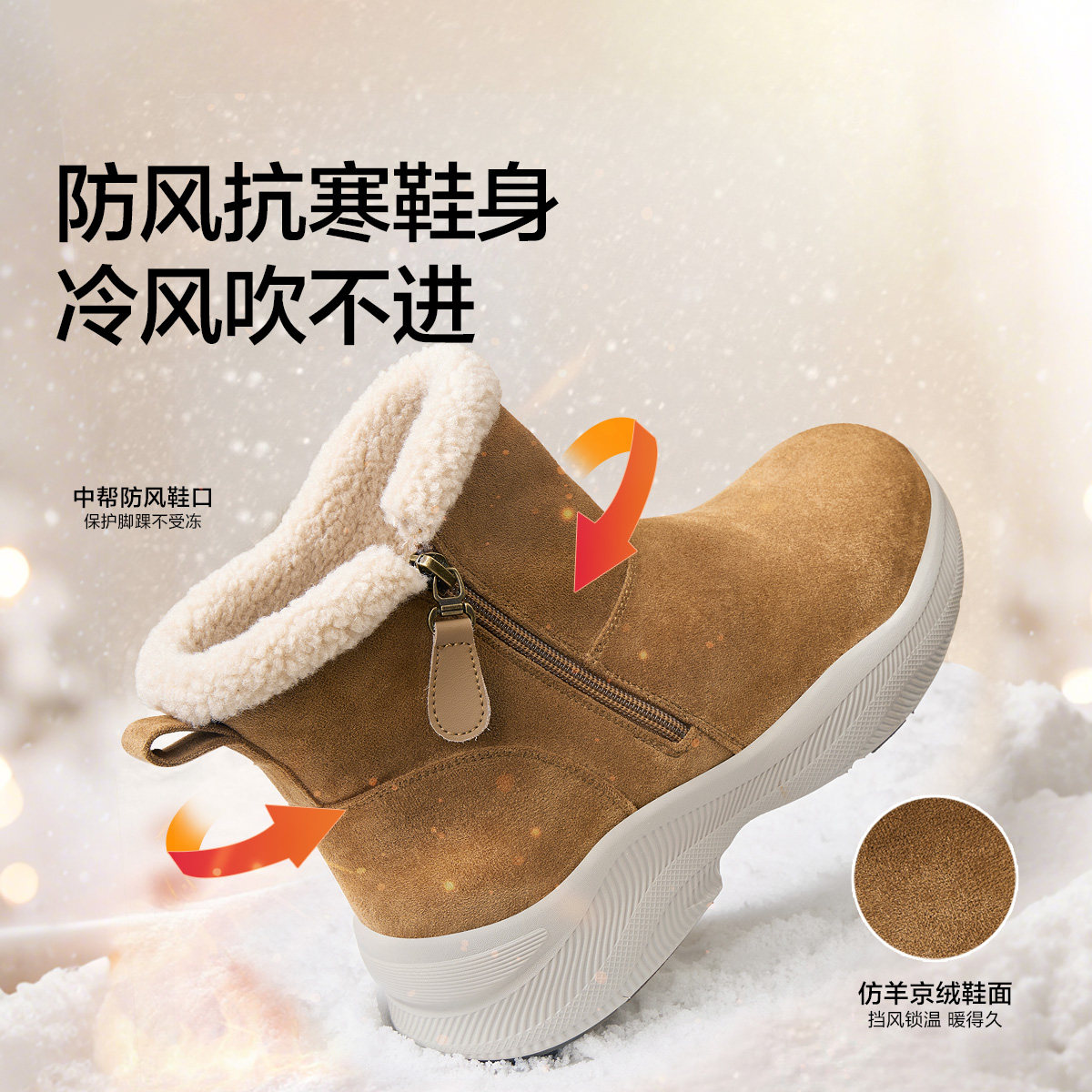 骆驼女鞋2025冬季时尚厚底雪地靴保暖厚绒棉鞋靴子