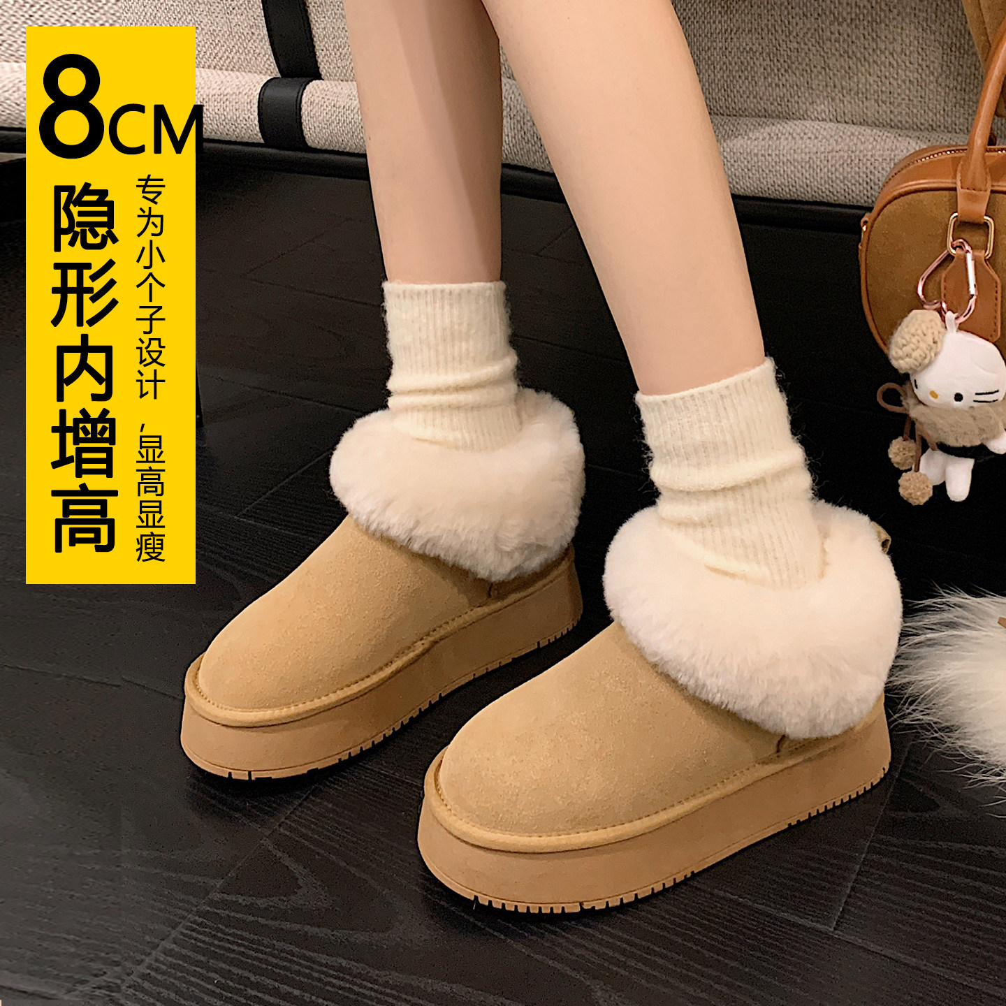 2025年超火的防水毛毛雪地靴,专为女性打造,集时尚与实用于一体。采用优质皮毛一体材质,内里加绒加厚,保暖性极佳,轻松应对严寒天气。鞋面具备防水功能,雨雪天也能保持双脚干爽舒适。防滑耐磨大底设计,抓地力强,行走更安全。内增高设计巧妙拉长腿部线条,兼顾美观与舒适。无论是日常通勤还是户外出行,这款雪地靴都能为你带来温暖与自信,成为冬日穿搭的必备单品,轻松驾驭各种风格,温暖又时髦。