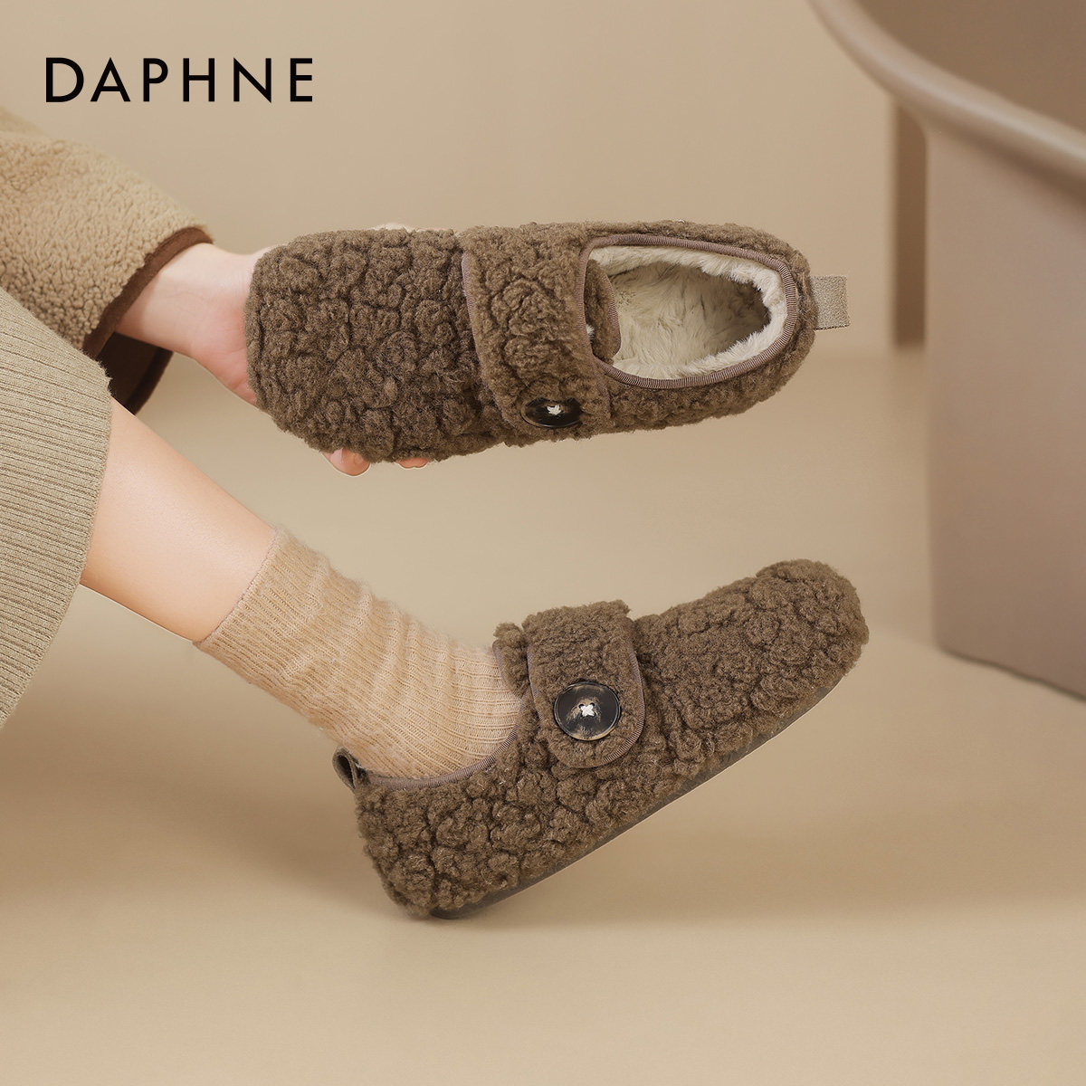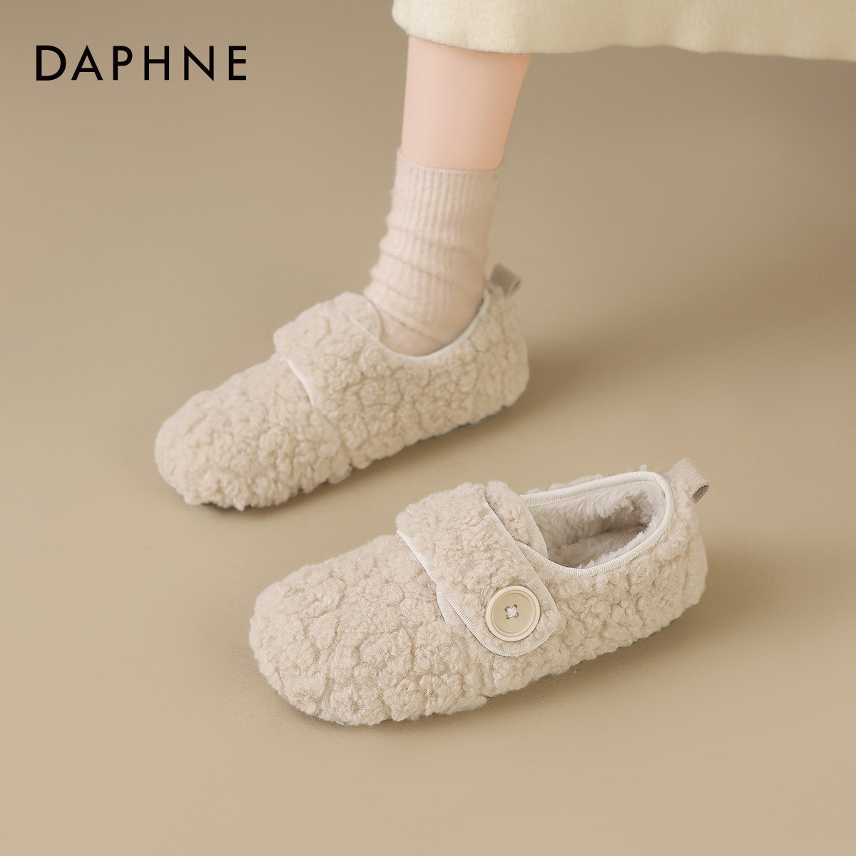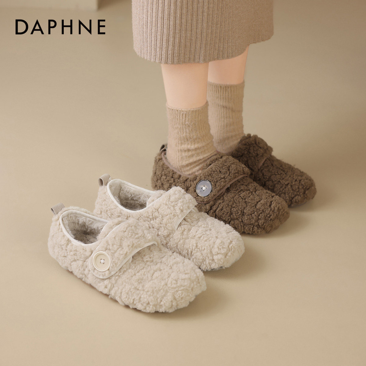 天猫达芙妮羊羔毛毛鞋女2025新款雪地靴冬季女鞋加绒豆豆鞋平底棉鞋子