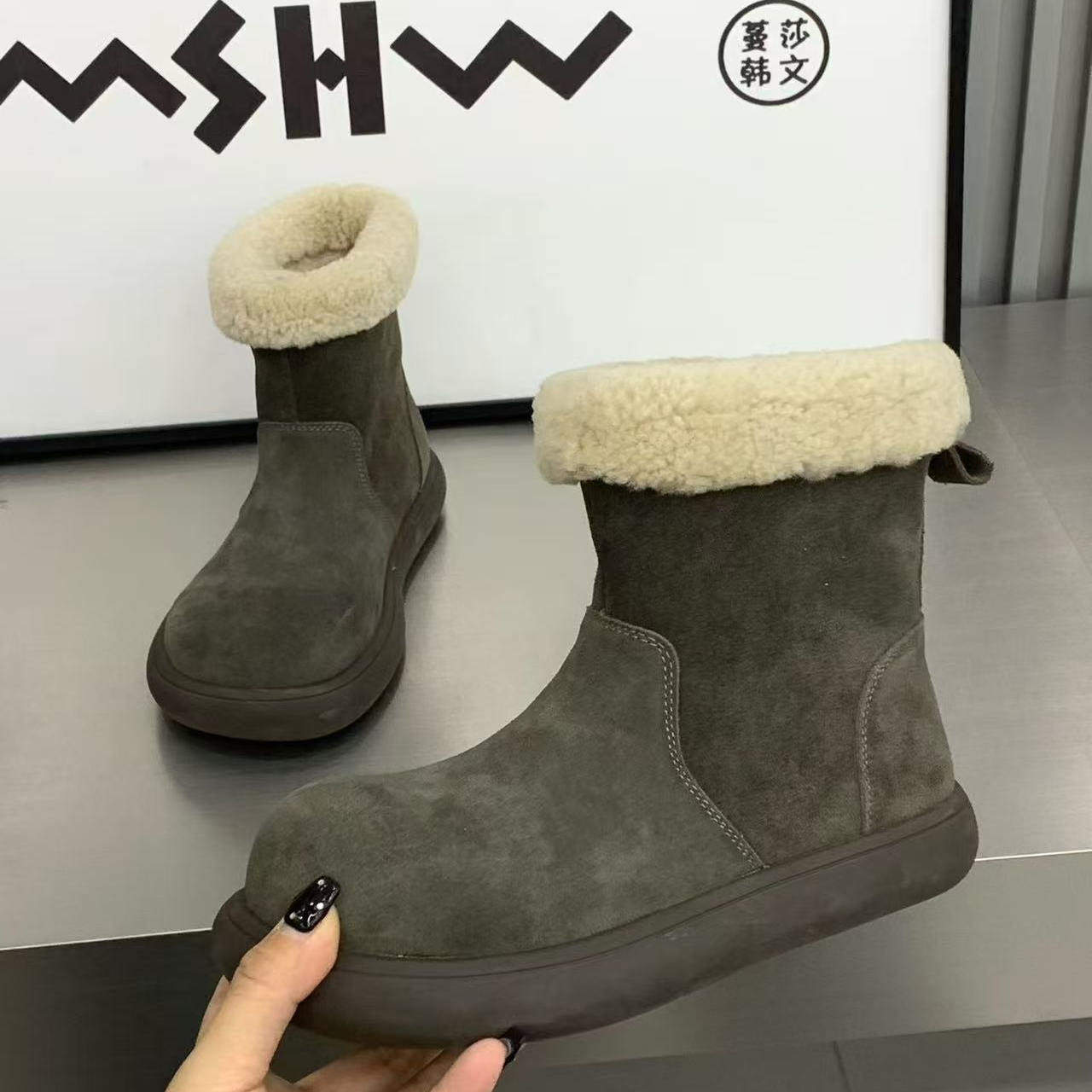 2025年冬季新款加厚毛绒雪地靴,专为时尚女性打造。采用优质羊羔毛内里,加绒加厚设计,保暖性能卓越,轻松抵御严寒。鞋面精选柔软耐磨面料,搭配可爱毛口装饰,增添俏皮气息。厚底设计不仅提升舒适度,更显腿长比例。切尔西短靴版型简约百搭,侧边弹力布设计穿脱便捷,适合日常通勤、逛街或户外出行。整体造型温暖又时髦,是冬日不可或缺的保暖单品,兼顾实用性与潮流感,让你在寒冬也能轻松凹造型,展现甜美可爱风格。