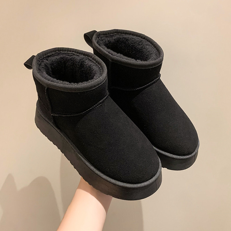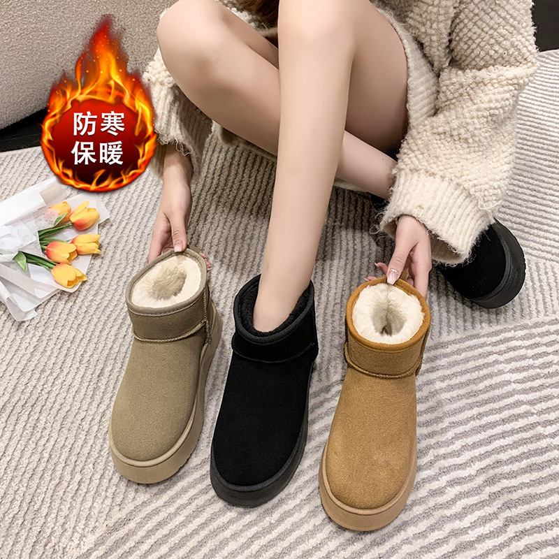 天猫厚底雪地靴女2025新款冬季时尚皮毛短筒雪地棉加绒加厚外穿棉鞋女