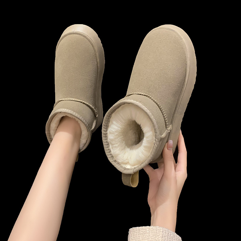 2025年新款厚底雪地靴,专为冬季时尚女性打造。采用优质皮毛一体材质,内里加绒加厚,保暖性极佳,轻松应对严寒天气。短筒设计利落百搭,搭配加厚防滑橡胶大底,不仅提升整体造型感,更增强行走稳定性与舒适度。鞋面质感细腻,防风防水,外穿通勤、逛街皆宜。多色可选,轻松驾驭各种冬日穿搭,兼顾实用与潮流。无论是搭配羽绒服、大衣还是针织裙,都能展现优雅又温暖的冬日风格。这款雪地棉鞋,是2025年冬季不可或缺的时尚单品,让美丽与温度同时在线。