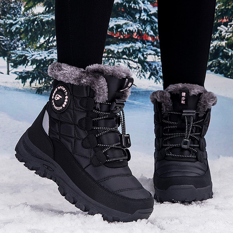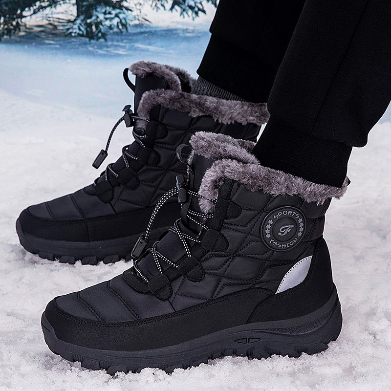 东北保暖时尚防滑雪地靴防水抗寒厚底女款棉靴加绒轻便面包鞋男士