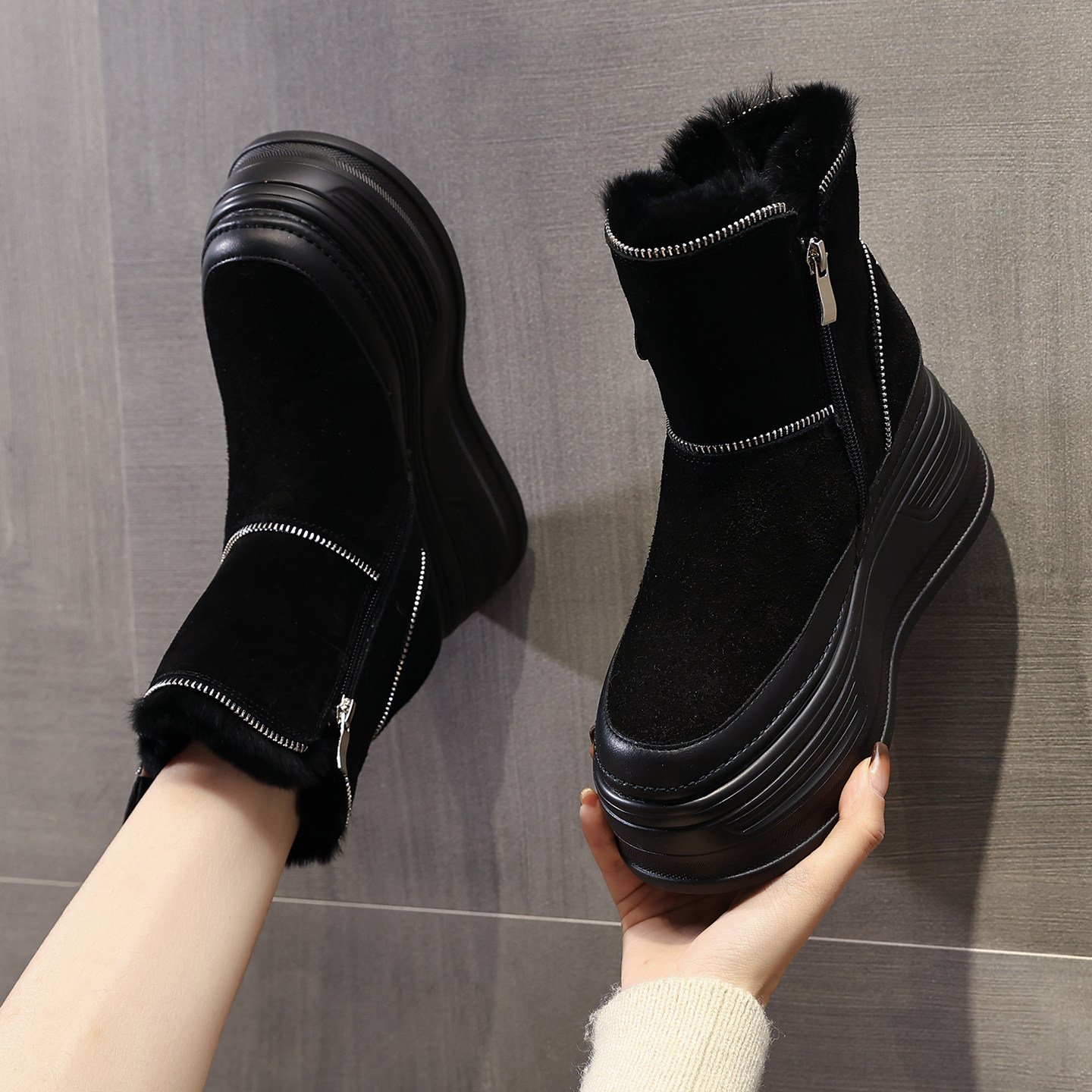 的~高级!毛毛鞋女外穿秋冬保暖平底玛丽珍加绒雪地靴内增高防水