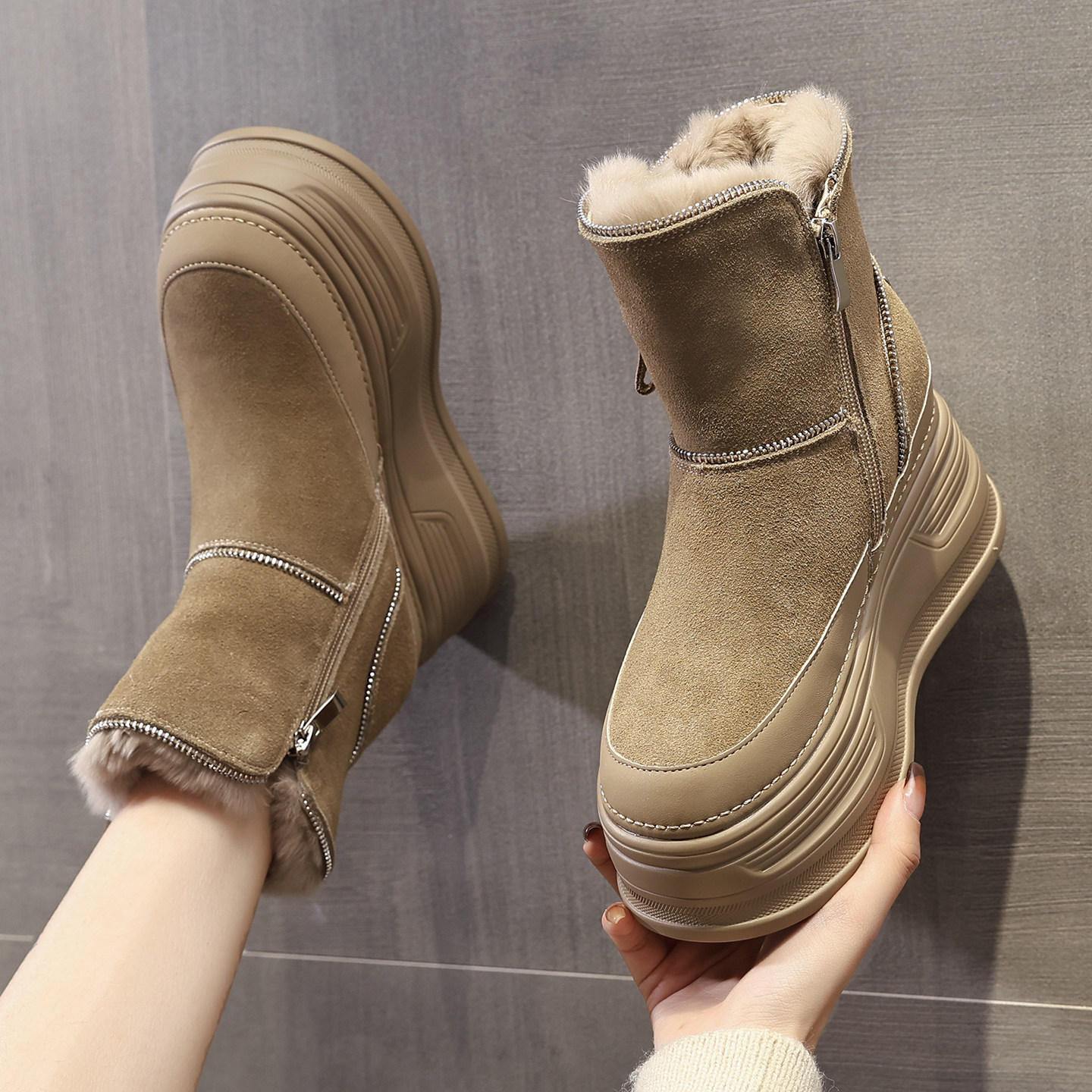 天骆驼女鞋2025冬季时尚厚底雪地靴保暖厚绒棉鞋靴子