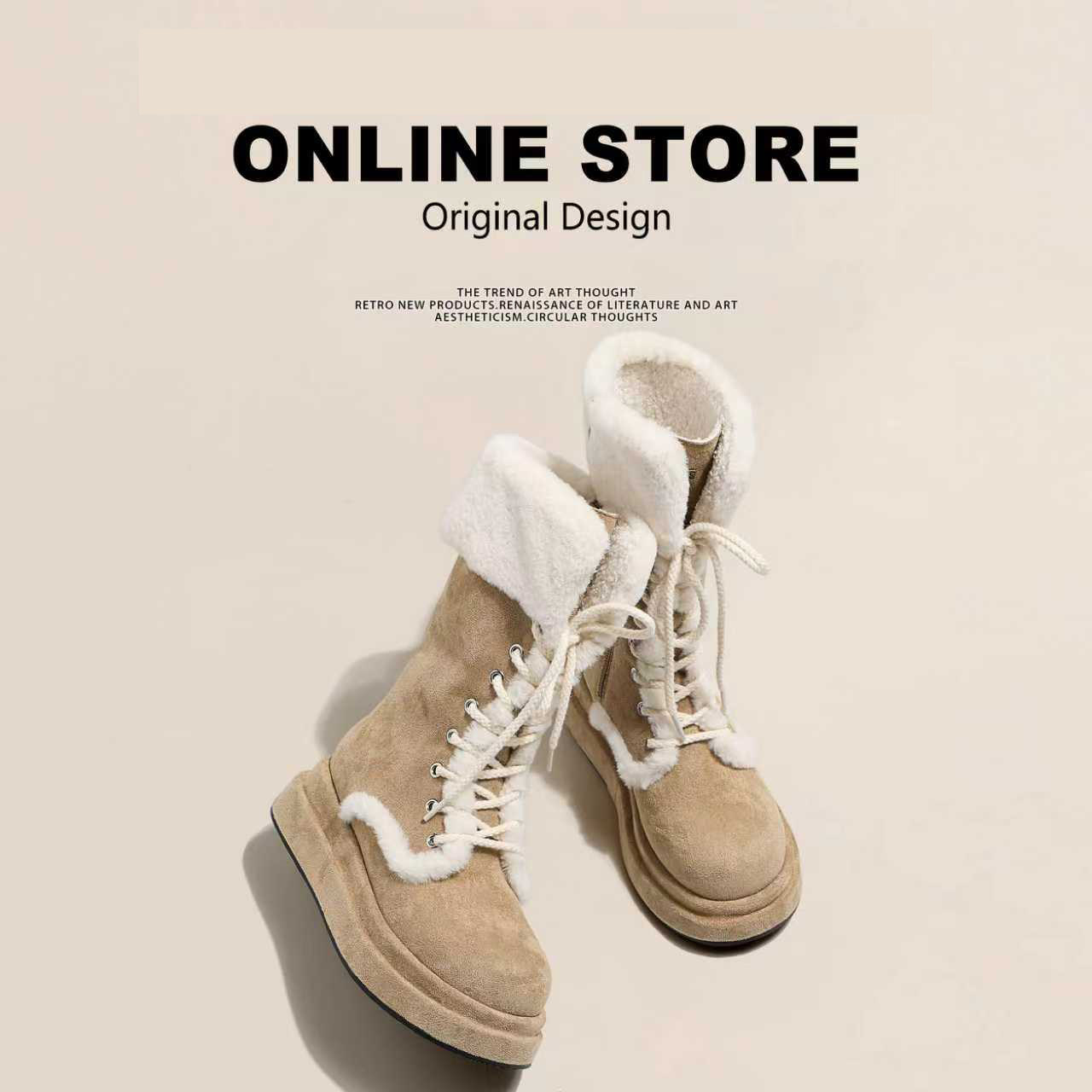 淘品牌清仓真皮雪地靴女2025冬季新款加绒棉鞋厚底中筒靴平底马丁靴