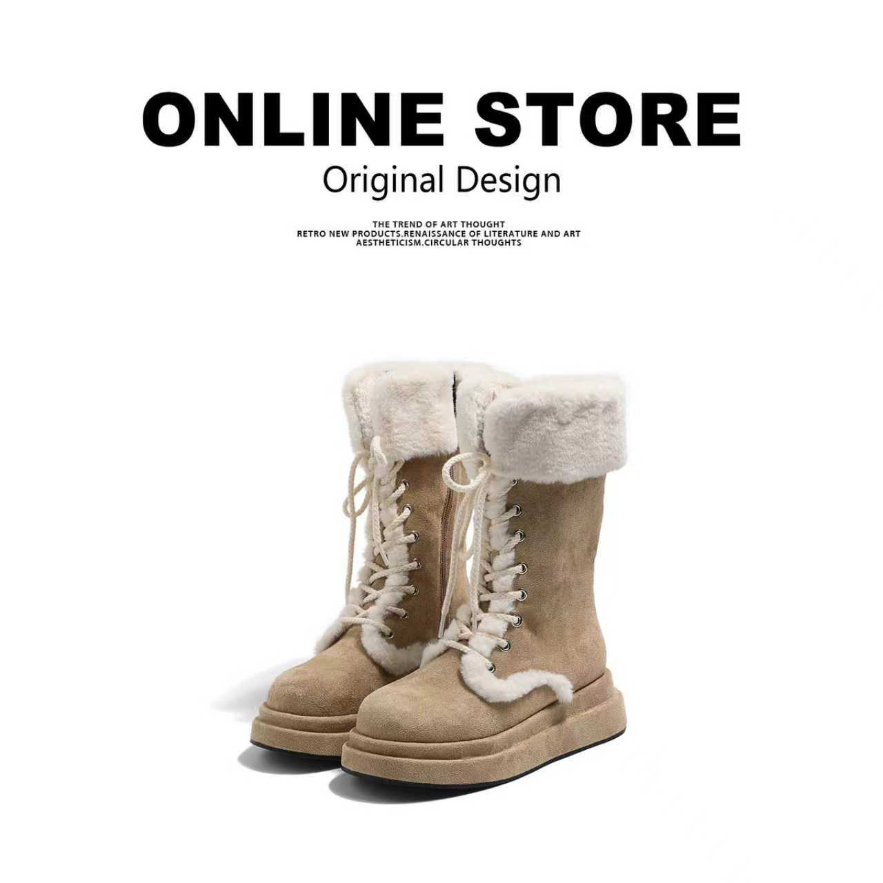 天猫厚底雪地靴女款2025新款冬季加绒加厚保暖毛毛棉鞋百搭外穿中筒靴