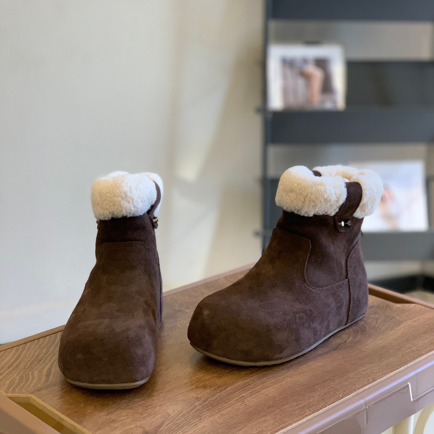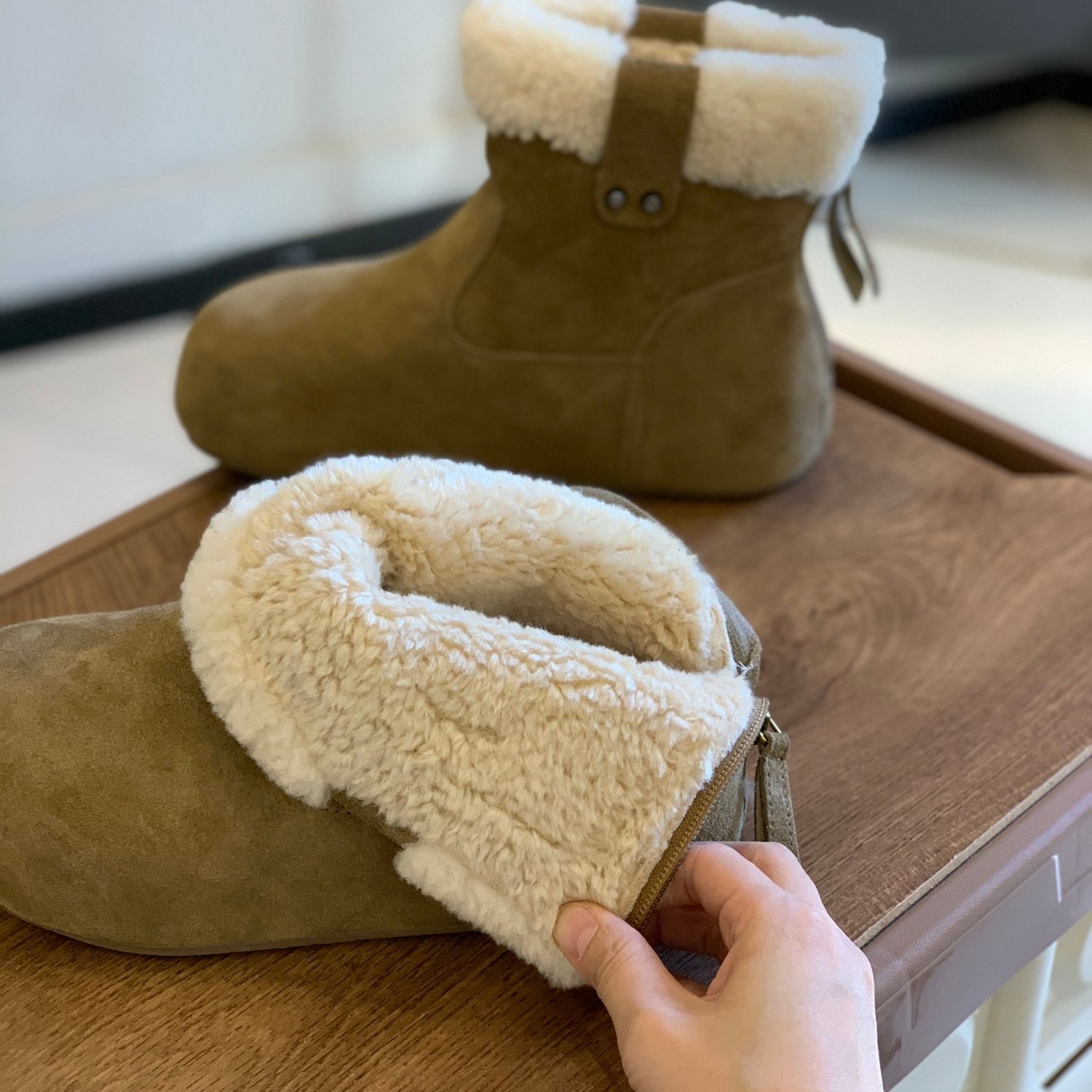 2025年冬季新款女士雪地靴,融合复古设计与现代时尚,打造百搭冬日造型。采用柔软加绒内里,温暖舒适,有效抵御严寒;鞋面精选优质毛绒材质,质感细腻,彰显高级感。经典短靴版型搭配内增高设计,悄然拉长腿部线条,显高显瘦。后拉链设计穿脱便捷,贴合脚型更稳固。防滑耐磨橡胶大底,抓地力强,雨雪天气也能安心出行。无论是搭配牛仔裤、阔腿裤还是裙装,都能轻松驾驭,是冬季衣橱不可或缺的时尚单品,兼顾保暖、舒适与美感,演绎冬日优雅新风尚。