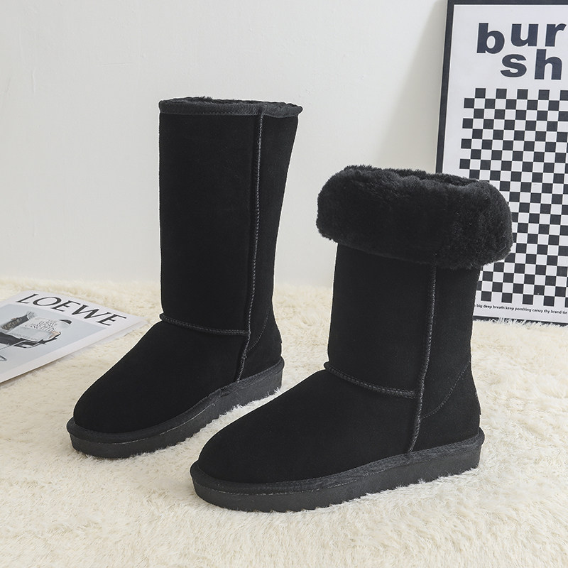 淘品牌清仓真皮雪地靴女2025冬季新款加绒棉鞋厚底中筒靴平底马丁靴