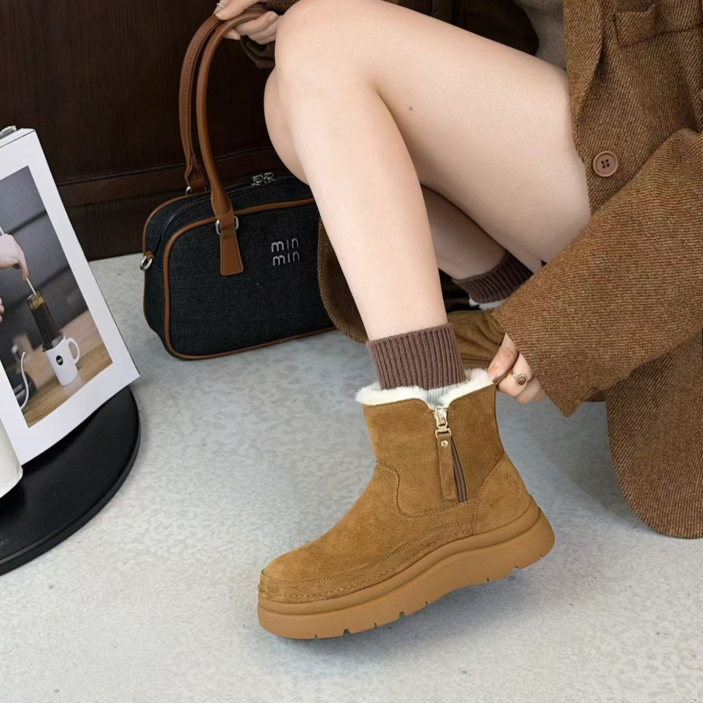 纤语佳丽2025冬季新款羊猄绒雪地靴(款号559-1),专为都市女性打造,兼顾时尚与保暖。采用优质羊猄绒面料,触感柔软,内里加厚绒毛,锁温保暖,轻松抵御严寒。圆头设计舒适不挤脚,厚底增高显腿长,同时具备出色防滑性能,雨雪天气也能稳健行走。鞋身简约大方,搭配多种冬装皆宜,是冬日出行的理想选择。轻便耐穿,细节做工精致,彰显品质生活态度。无论是通勤、逛街还是户外赏雪,纤语佳丽雪地靴都能为你带来温暖与自信,尽展优雅冬日风采。