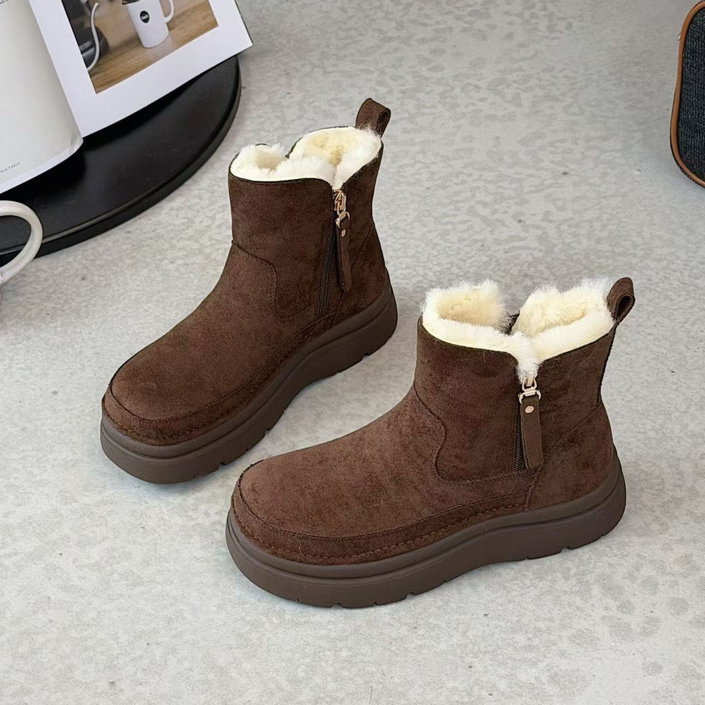 淘宝纤语佳丽2025冬羊猄绒雪地靴女圆头厚底防滑加厚保暖女棉靴559-1