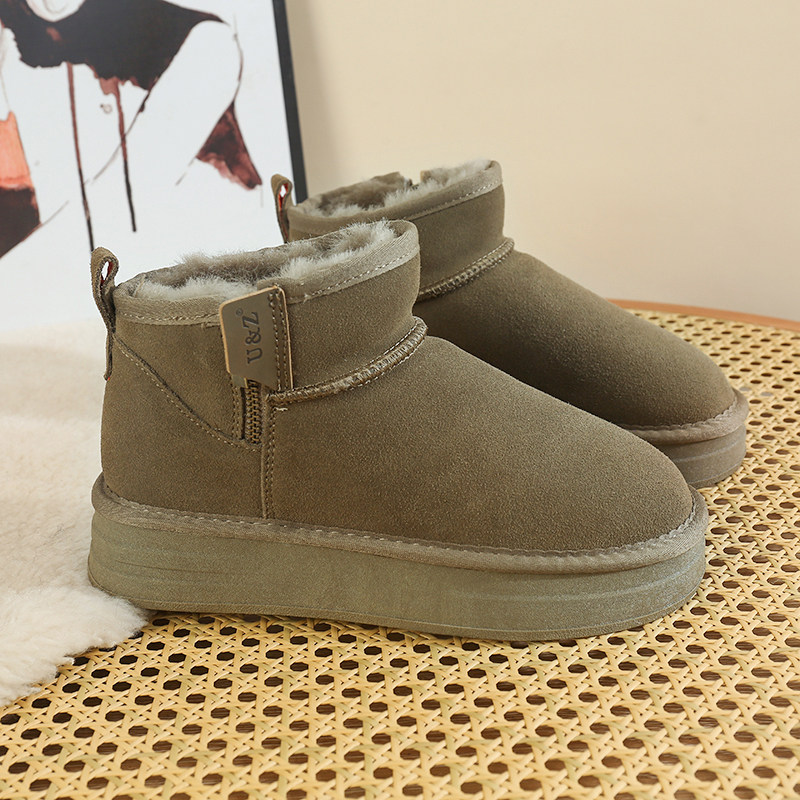 淘品牌清仓真皮雪地靴女2025冬季新款加绒棉鞋厚底中筒靴平底马丁靴