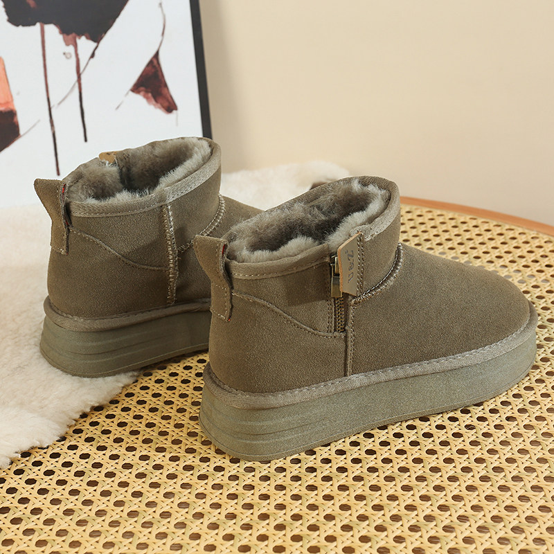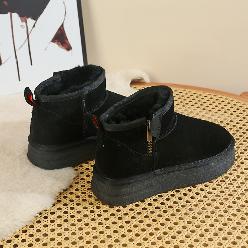 天猫侧拉链皮毛一体厚底雪地靴女款2025冬季新款短筒防滑加绒保暖棉鞋