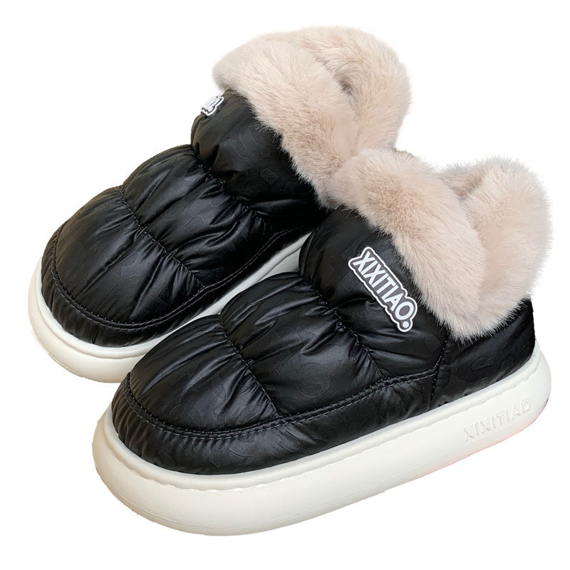 厚底防滑雪地靴女2025年新款冬季保暖面包鞋一脚蹬加绒鞋子黑色