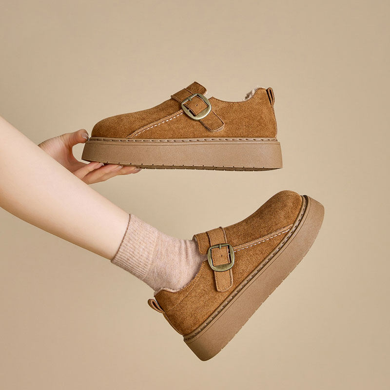 的~高级!毛毛鞋女外穿秋冬保暖平底玛丽珍加绒雪地靴内增高防水