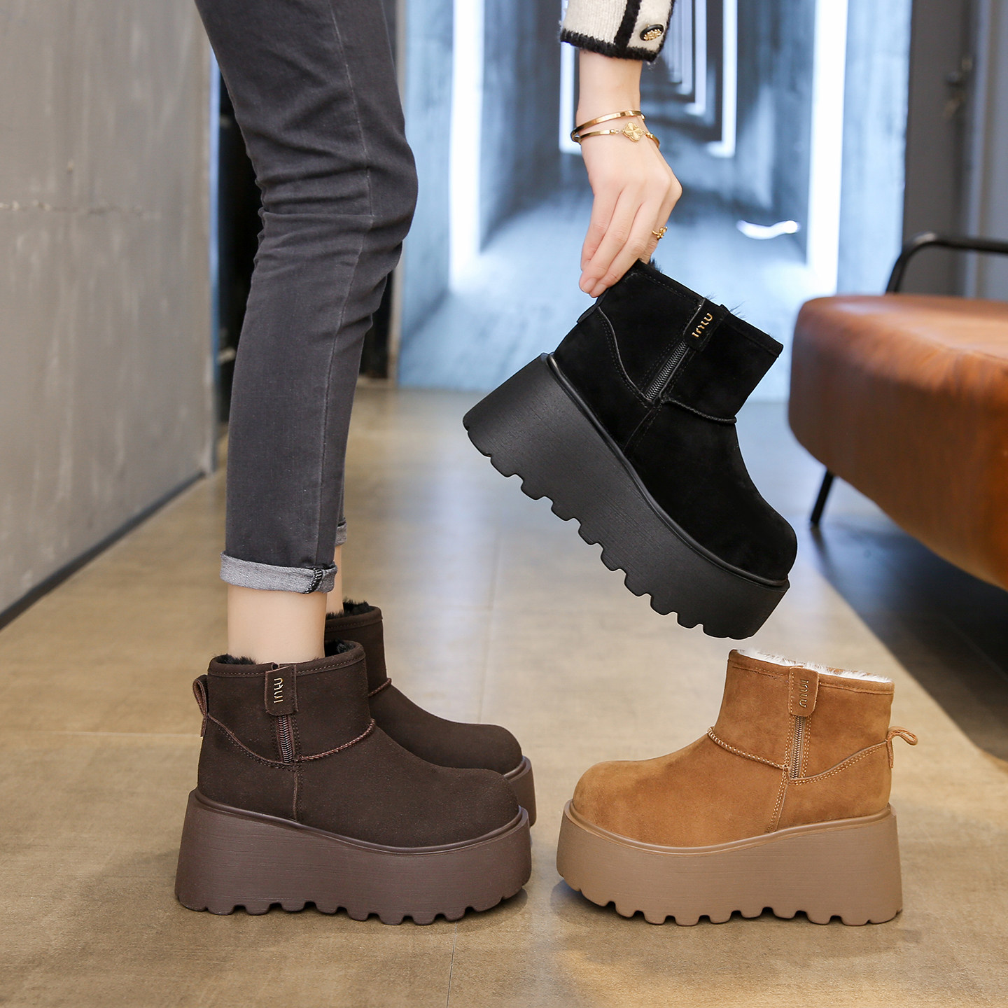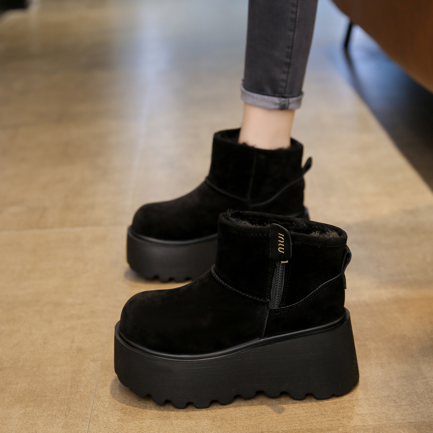 天猫厚底增高雪地靴女2025冬季新款加绒短靴防水防滑保暖东北棉鞋小码