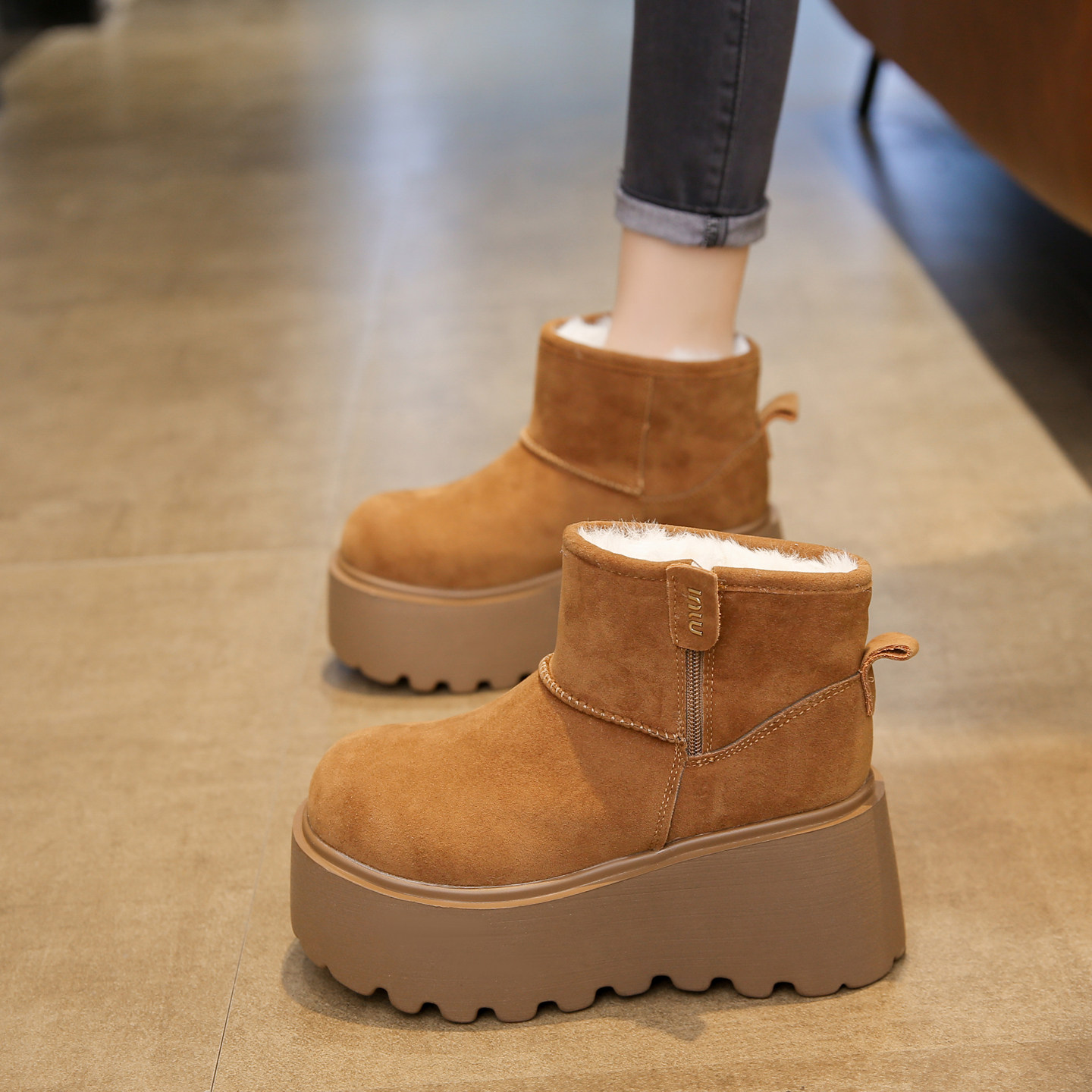 JOOC玖诗加绒保暖雪地靴女2025冬季新款多层加厚底小个子大黄靴