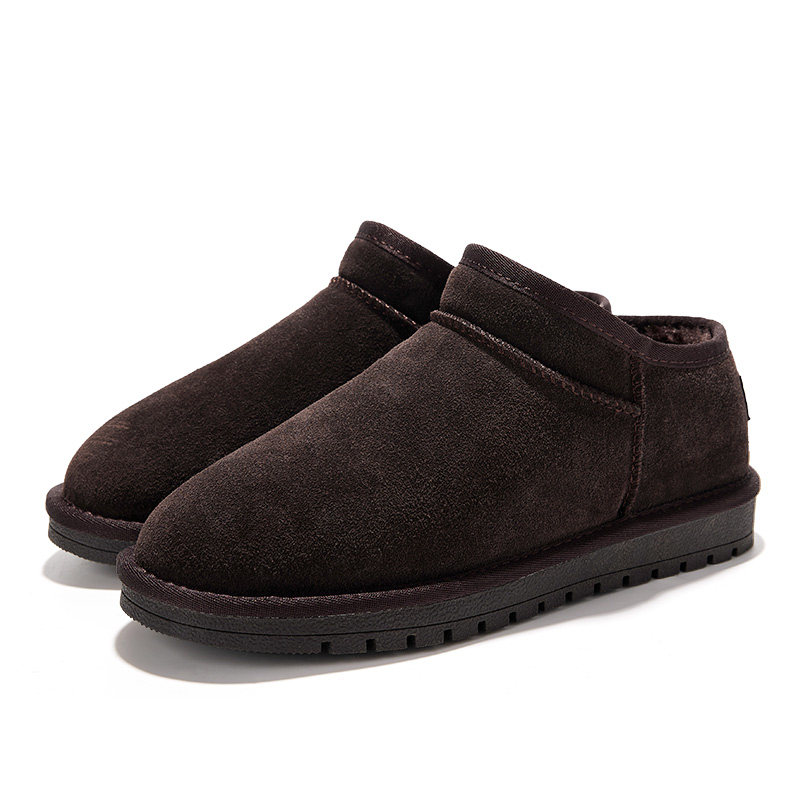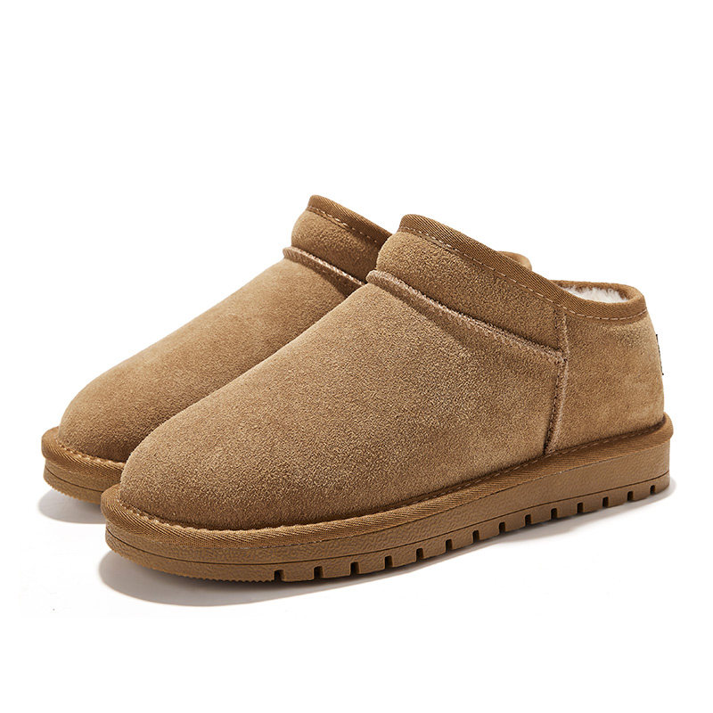 天皮面平底雪地靴一脚蹬加绒加厚棉鞋女2025冬勃肯鞋豆豆鞋防水防滑