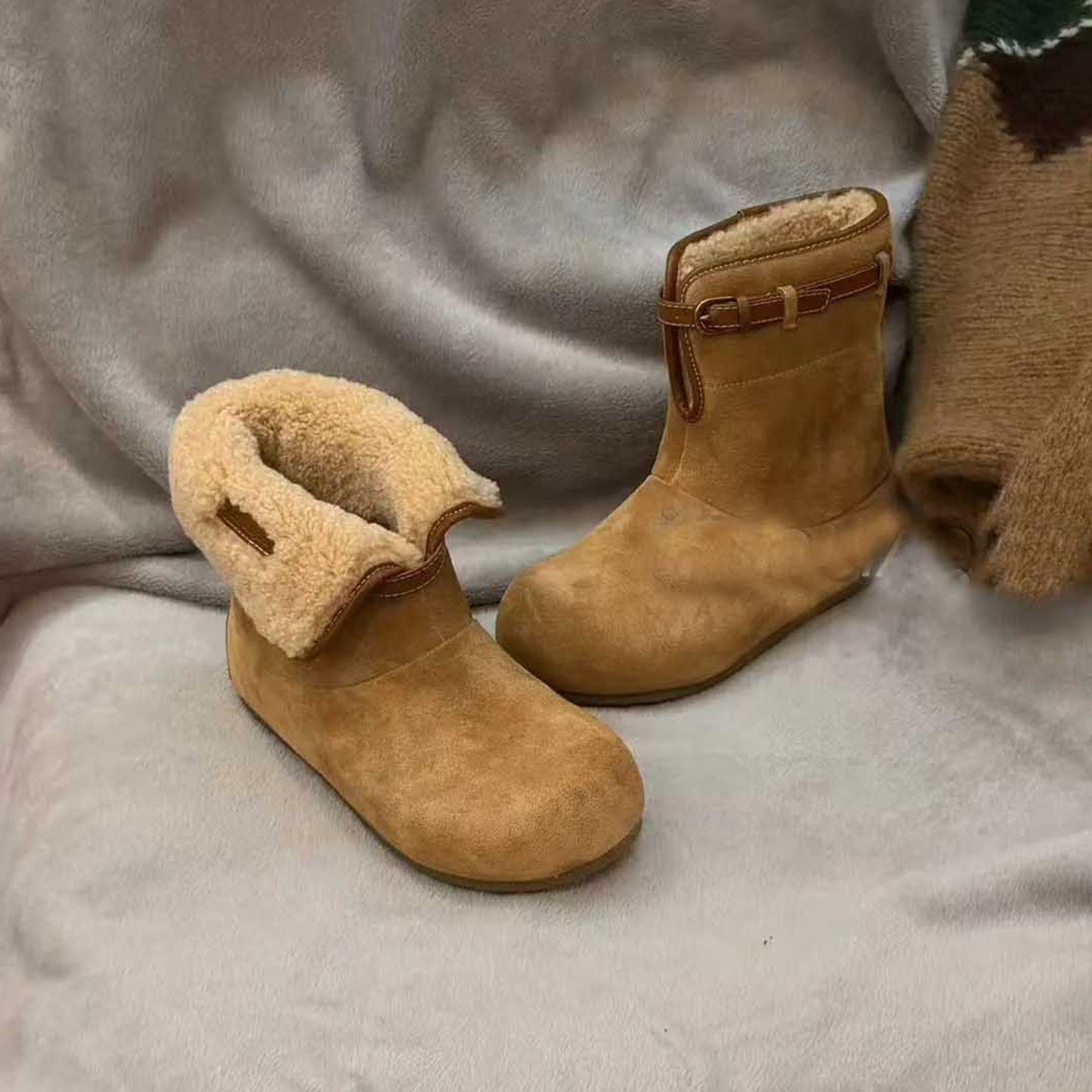 ABC真皮雪地靴女童冬季儿童棉靴加绒加厚女宝巨好看毛毛靴保暖鞋