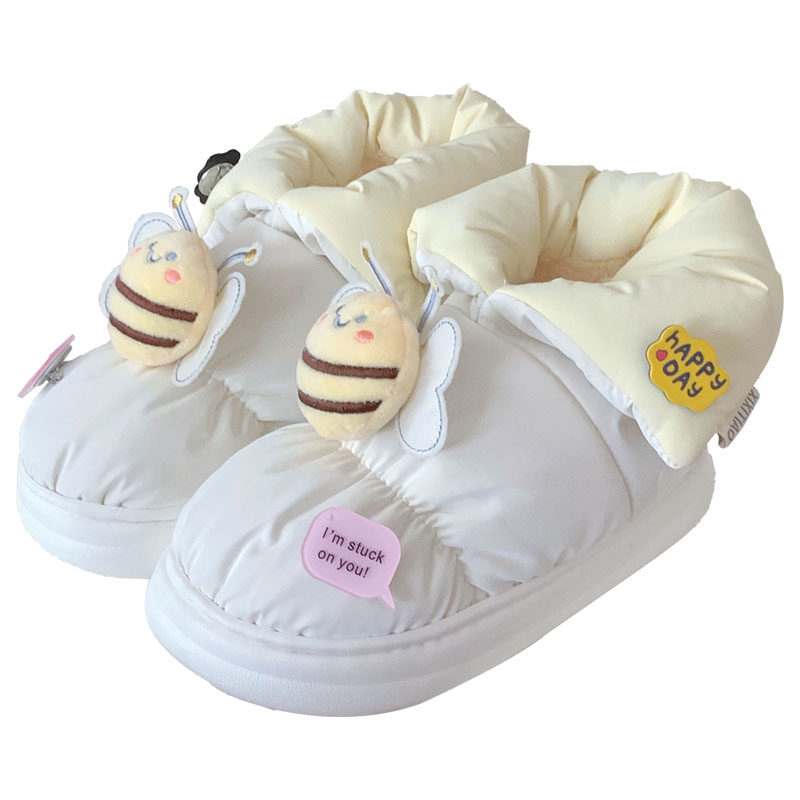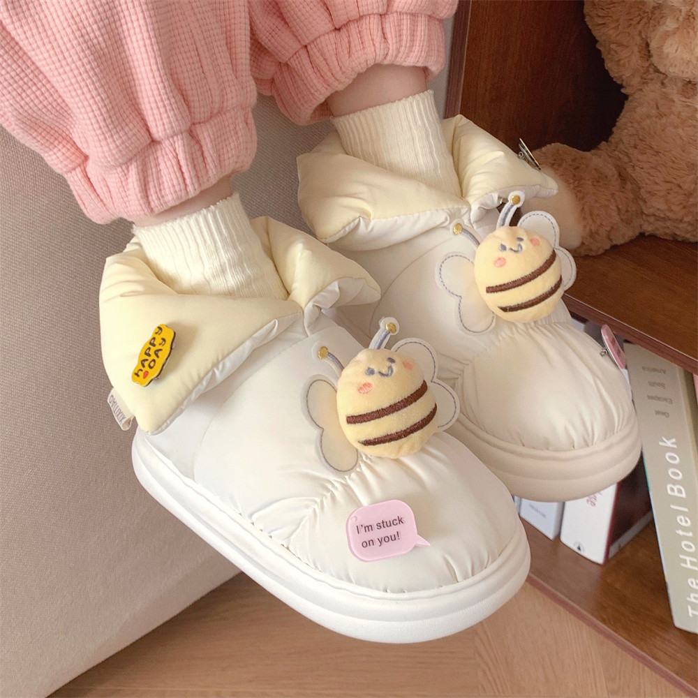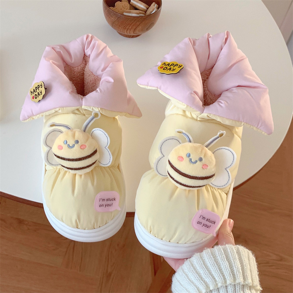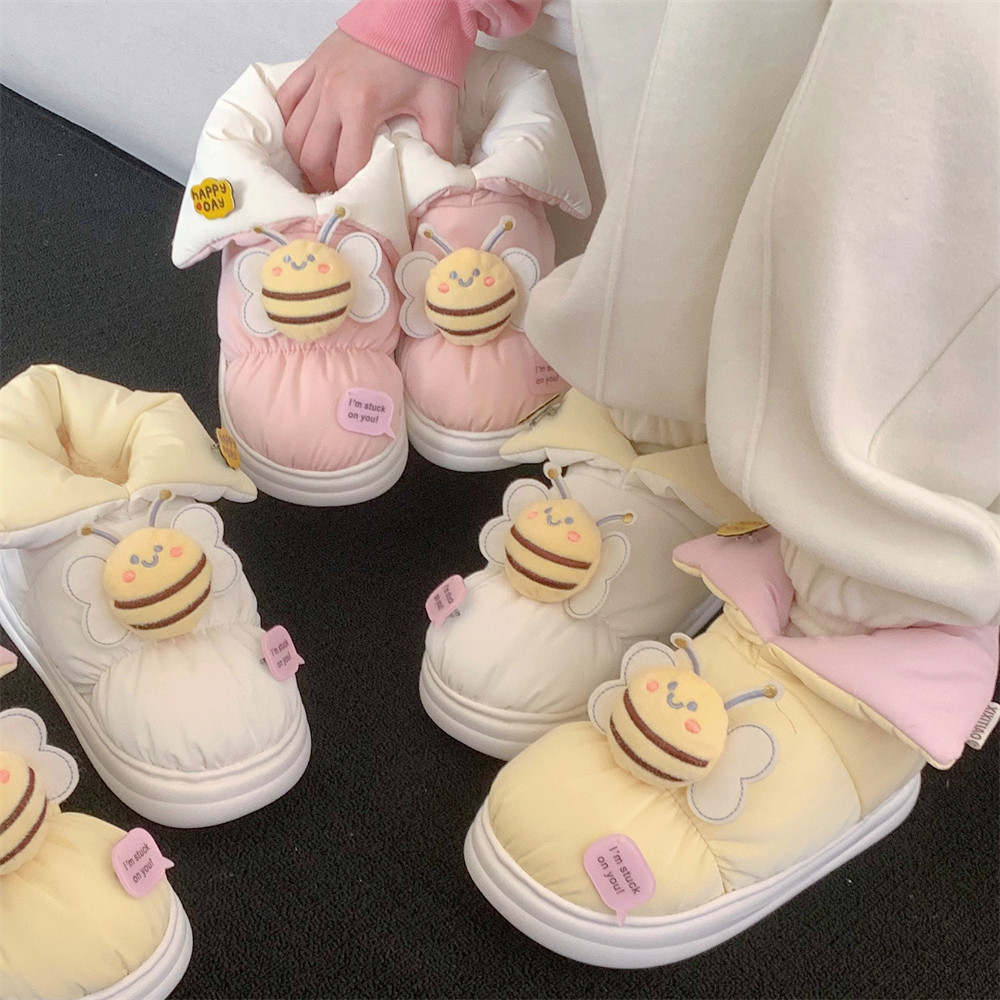 淘宝细细条 冬季少女心可爱小蜜蜂面包棉鞋保暖加绒防水拼色雪地靴女