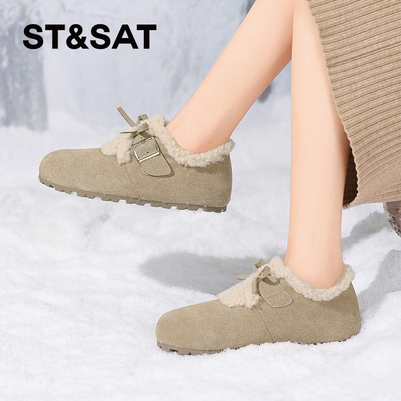 2025年秋冬新款,星期六皮毛一体雪地靴女款重磅登场!采用高品质皮毛一体材质,内里加绒加厚设计,保暖性能卓越,轻松抵御严寒。鞋型融合经典勃肯风格,舒适贴合脚型,久穿不累。防滑耐磨橡胶大底,抓地力强,雨雪天气也能稳健行走。简约时尚外观,百搭各种秋冬穿搭,无论是通勤还是户外出行皆宜。匠心工艺与实用功能完美结合,是冬日温暖与格调的理想之选。这个冬天,让双脚在柔软与温暖中自在漫步。