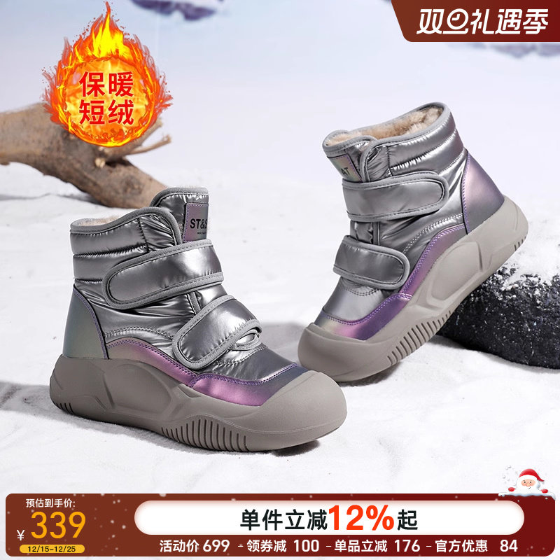 天骆驼女鞋2025冬季时尚厚底雪地靴保暖厚绒棉鞋靴子
