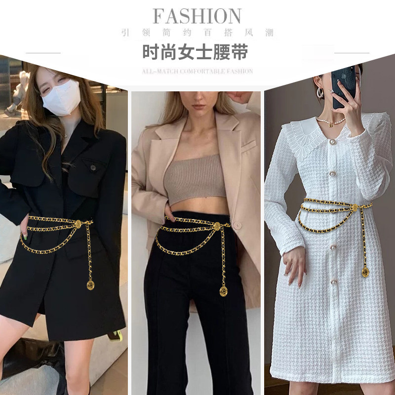 天猫腰链女配裙子大衣小香风金属毛衣链条腰带ins风裤链装饰西装腰封