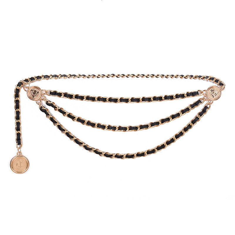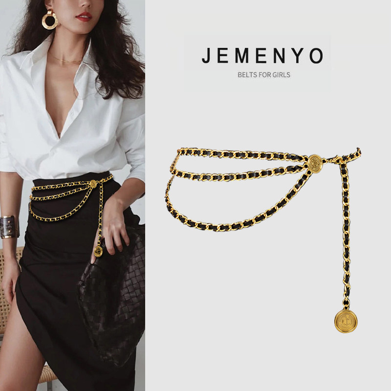 淘金属链条腰带黑色编织装饰皮带女复古金色腰链ins小香风网红裤链