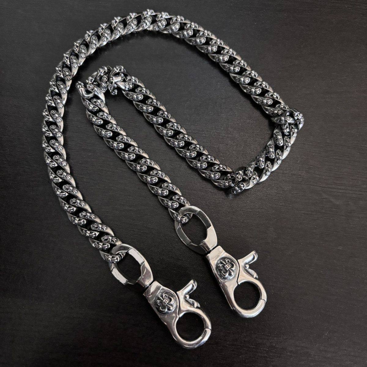 这款潮流双龙虾扣复古做旧欧美风裤链,专为追求个性与态度的嘻哈潮人设计。采用高品质合金材质,经手工做旧工艺处理,呈现复古质感与硬朗街头风范。双龙虾扣设计稳固耐用,可轻松搭配牛仔裤、工装裤或斜挎包,实现一链多用的百搭效果。链条粗细适中,垂坠感强,兼具装饰性与实用性,是提升整体造型的点睛之笔。无论是日常出街、音乐节还是潮流聚会,这款裤链都能彰显你的独特品味与不羁风格,轻松驾驭欧美街头时尚,成为人群中最吸睛的焦点。