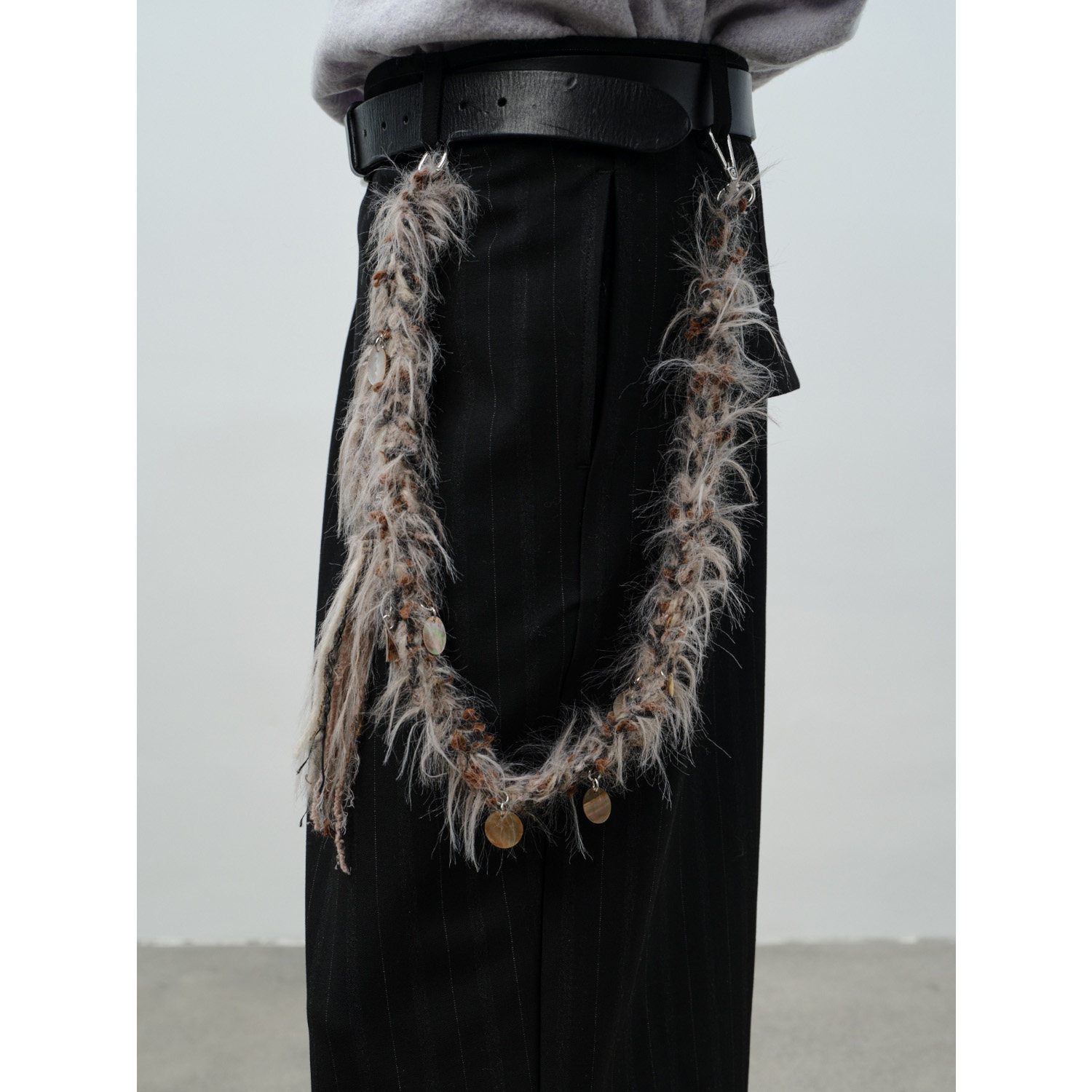 淘宝GRAINMUSTARD 复古手工编织个性腰带腰链设计感贝壳毛条装饰裤链