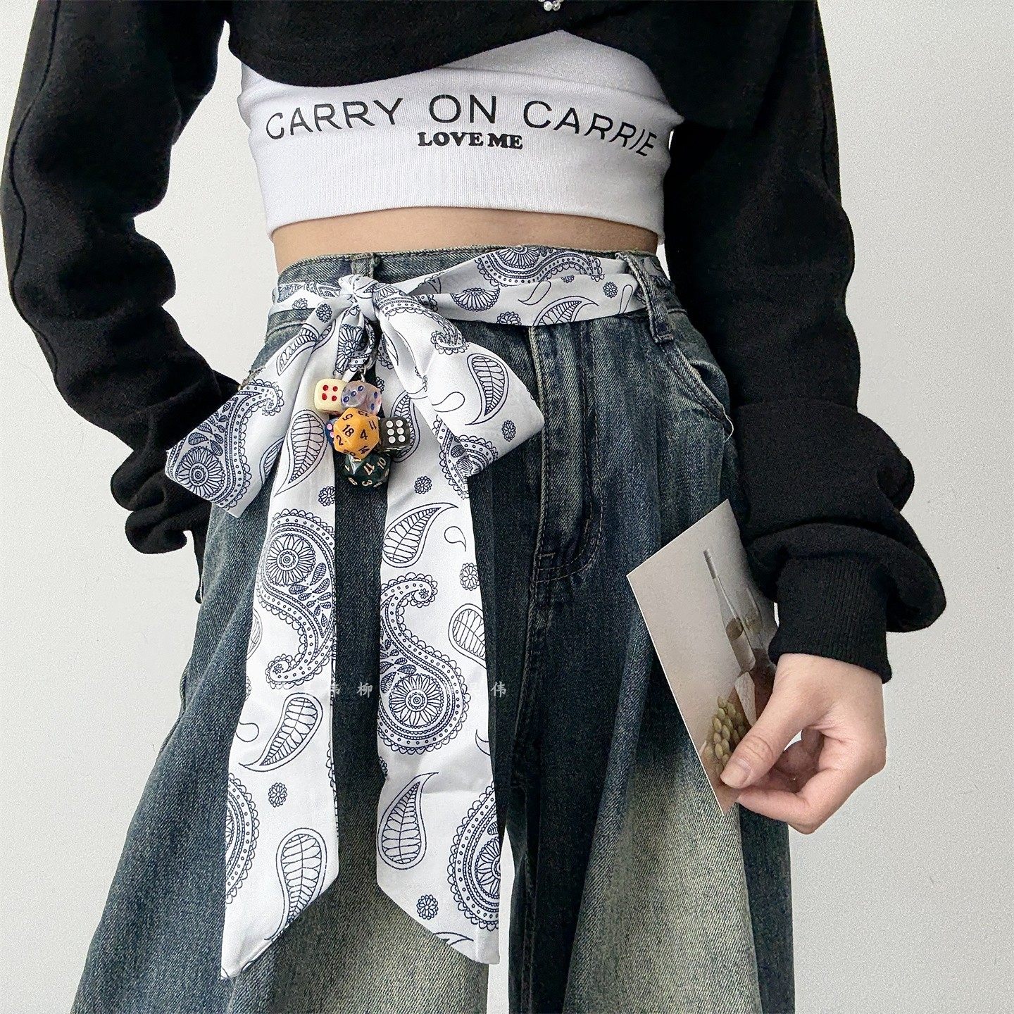 淘宝柳吴伟腰果花长条丝巾腰带牛仔裤设计感小众皮带女款裤链辣妹y2k