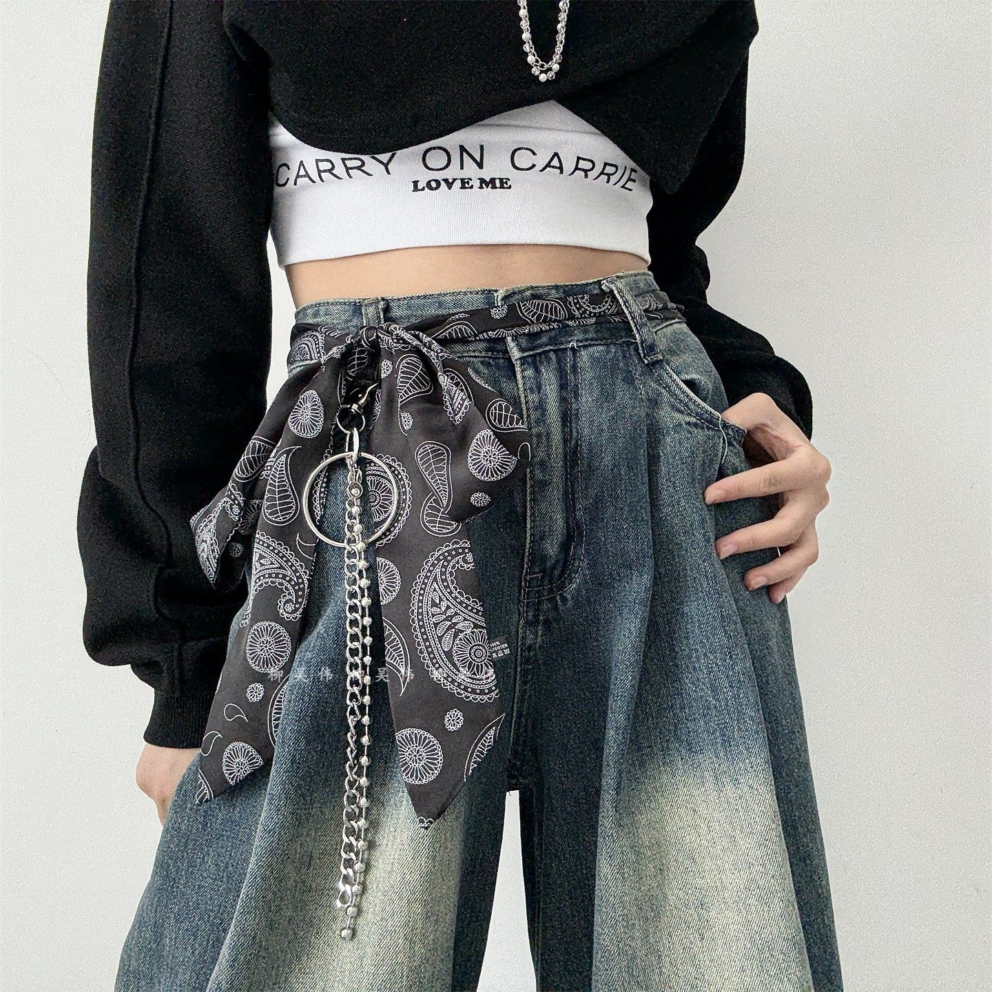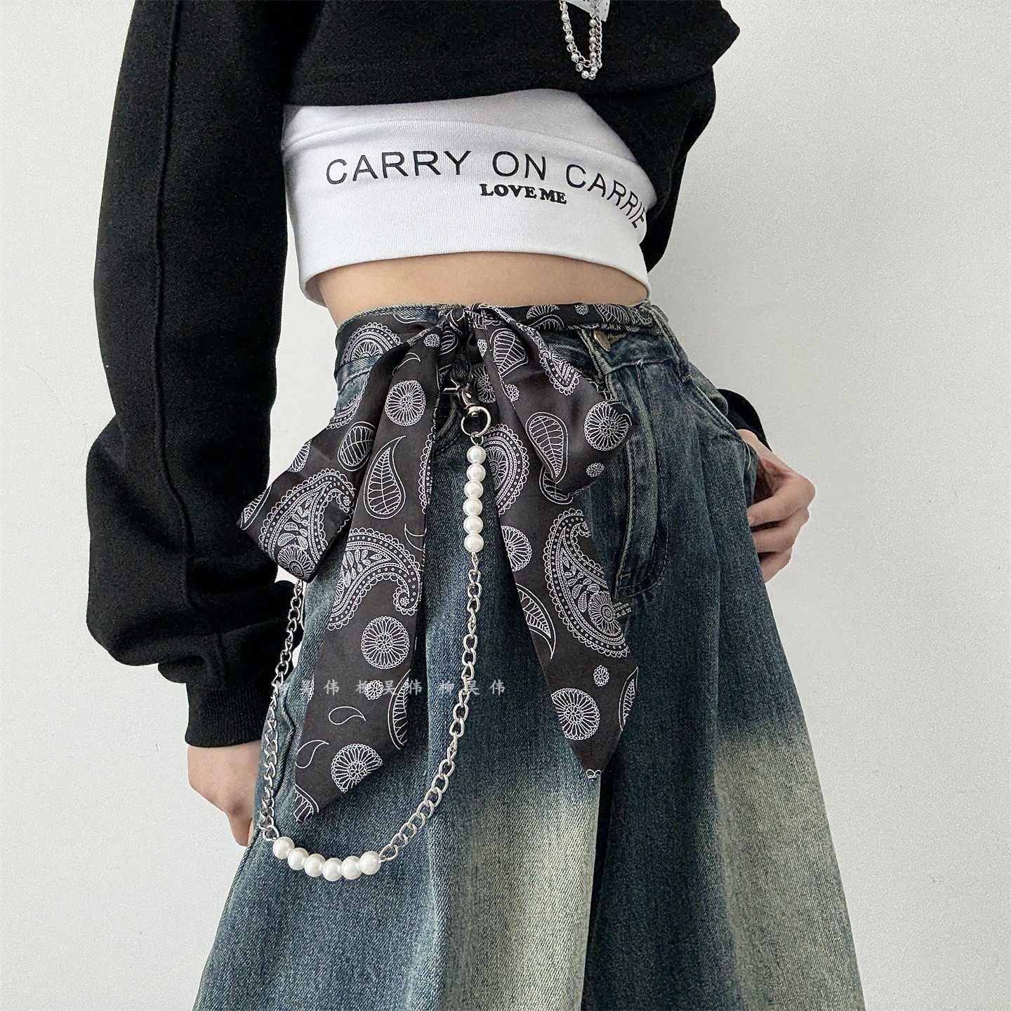 淘裤子上的配饰链条裤链挂件男酷腰果花丝巾腰带女配牛仔裤女款辣妹