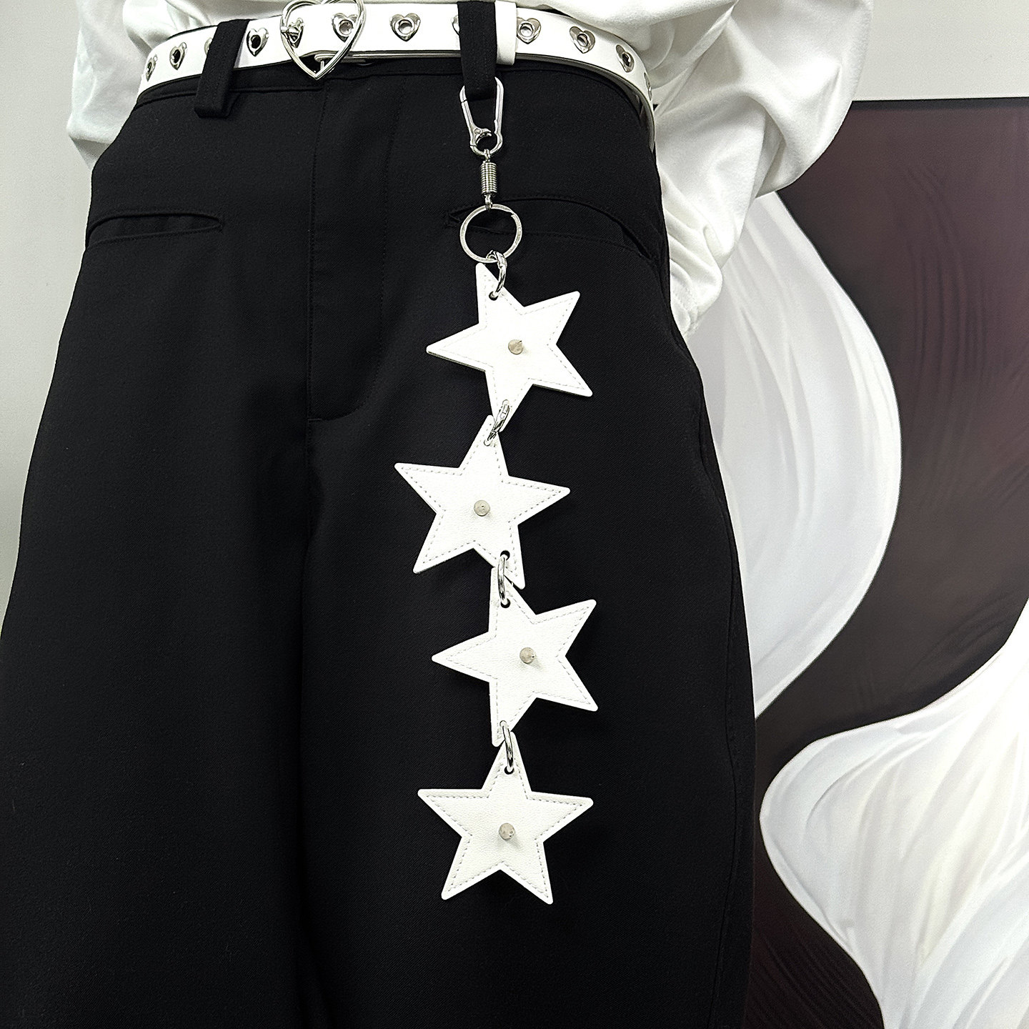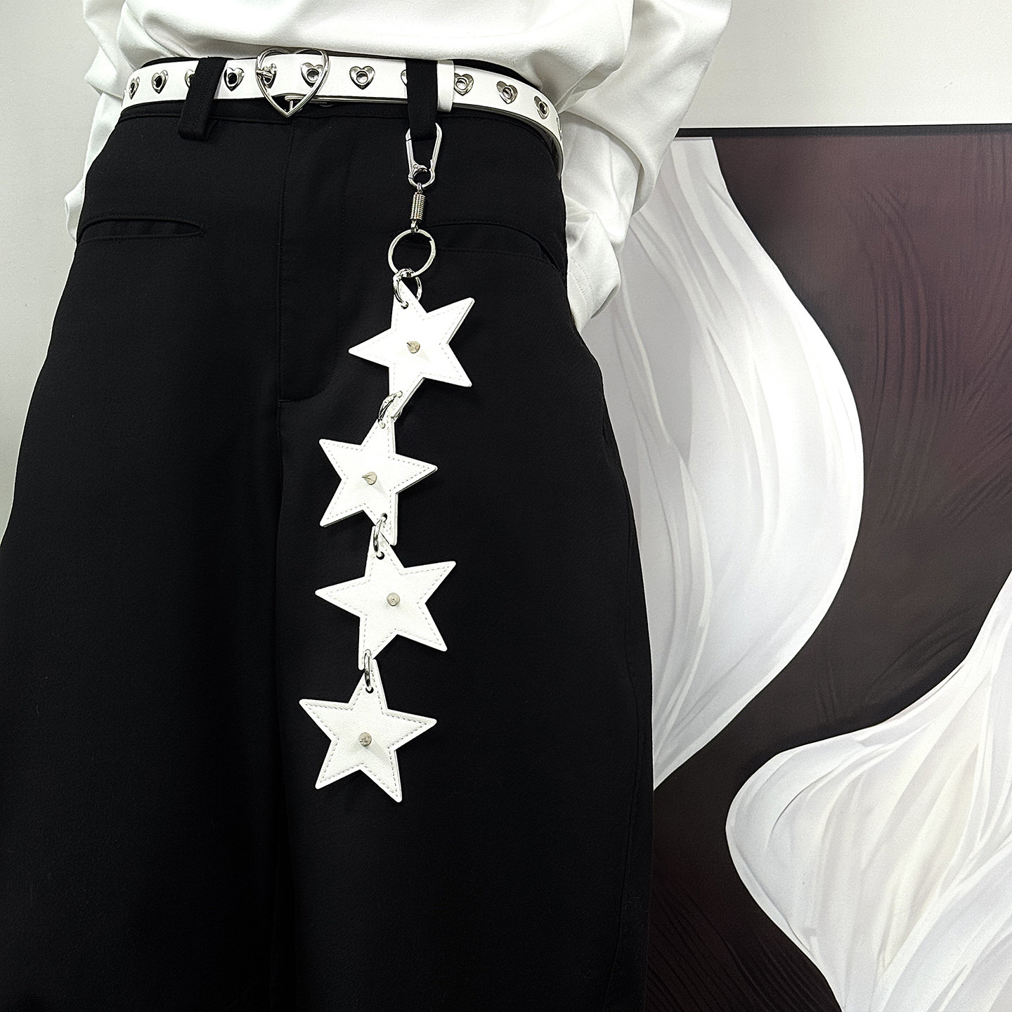 这款白色小众设计皮革裤链,是朋克亚文化与街头风格的独特融合。采用优质仿皮材质,搭配金属铆钉、链条与复古挂扣,细节精致且充满叛逆气息。作为腰间装饰腰链,它既可搭配破洞牛仔裤、工装裤,也能点缀裙装,为整体造型注入不羁个性。其小众设计避免了大众化审美,彰显佩戴者的独特品味与态度。无论是音乐节、街头穿搭,还是日常出街,这款裤链挂件都能成为吸睛亮点,完美诠释朋克精神中的自由与反叛,是追求个性表达的时尚配饰之选。