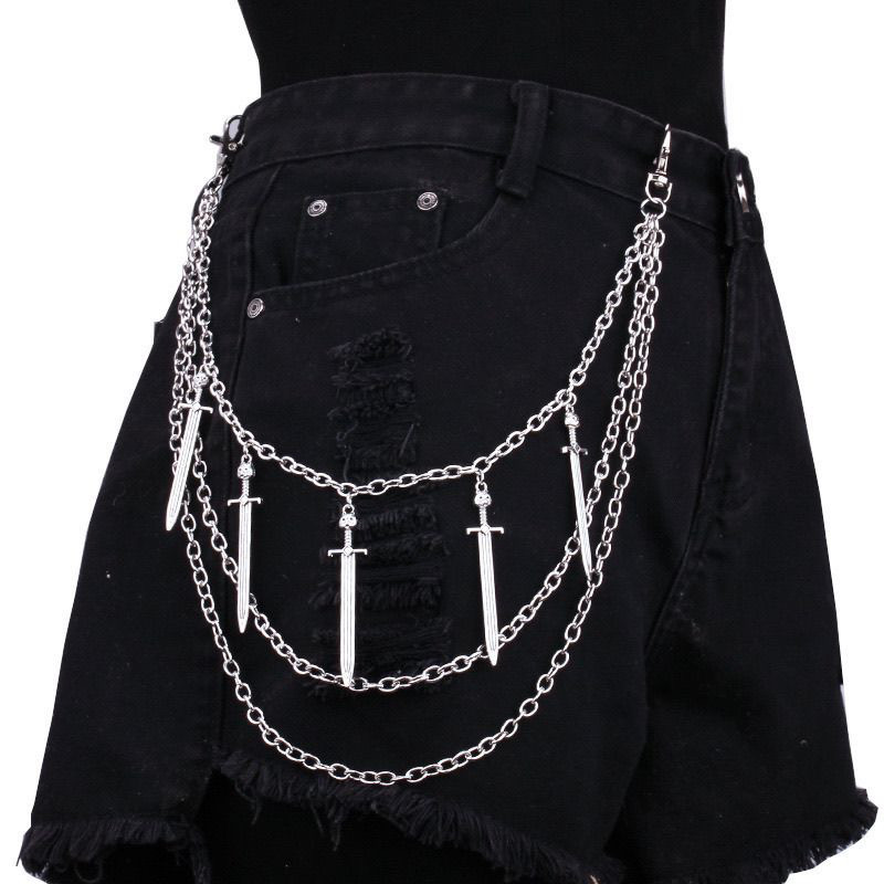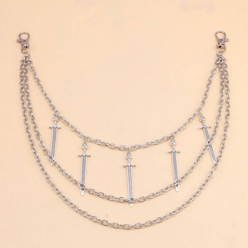 天几何多层链条镂空十字架嘻哈裤链男女腰链百搭剑吊坠高级感配饰