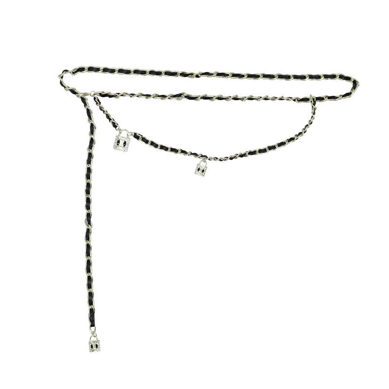 淘金属链条腰带黑色编织装饰皮带女复古金色腰链ins小香风网红裤链