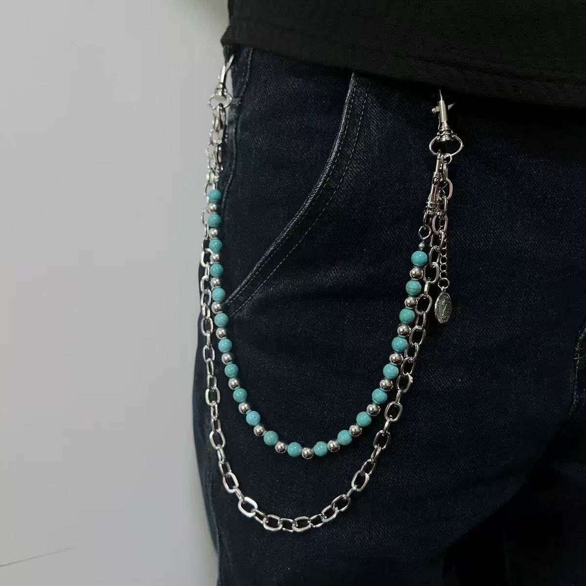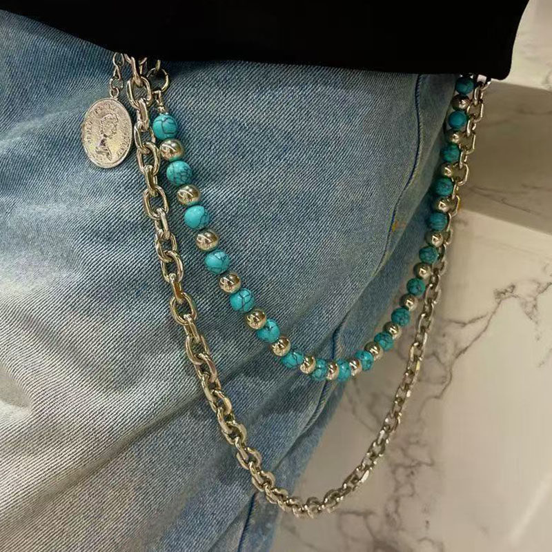天猫男女朋克嘻哈裤链配饰蓝底黑纹手工串珠牛仔裤挂饰复古街头小众潮