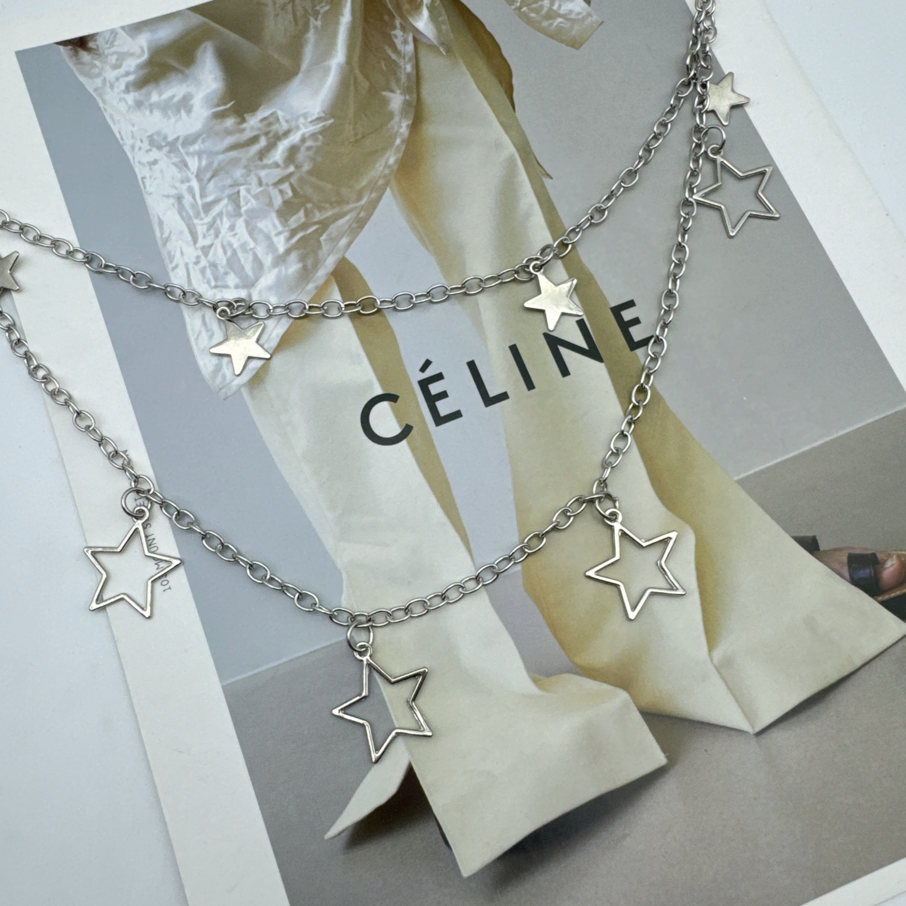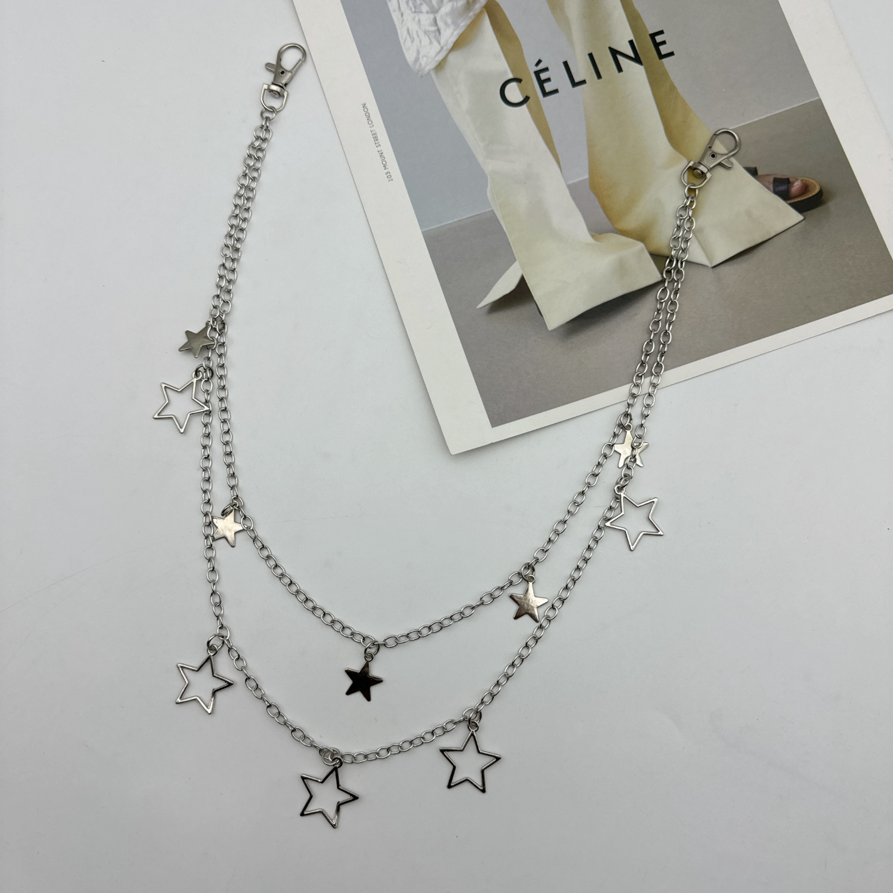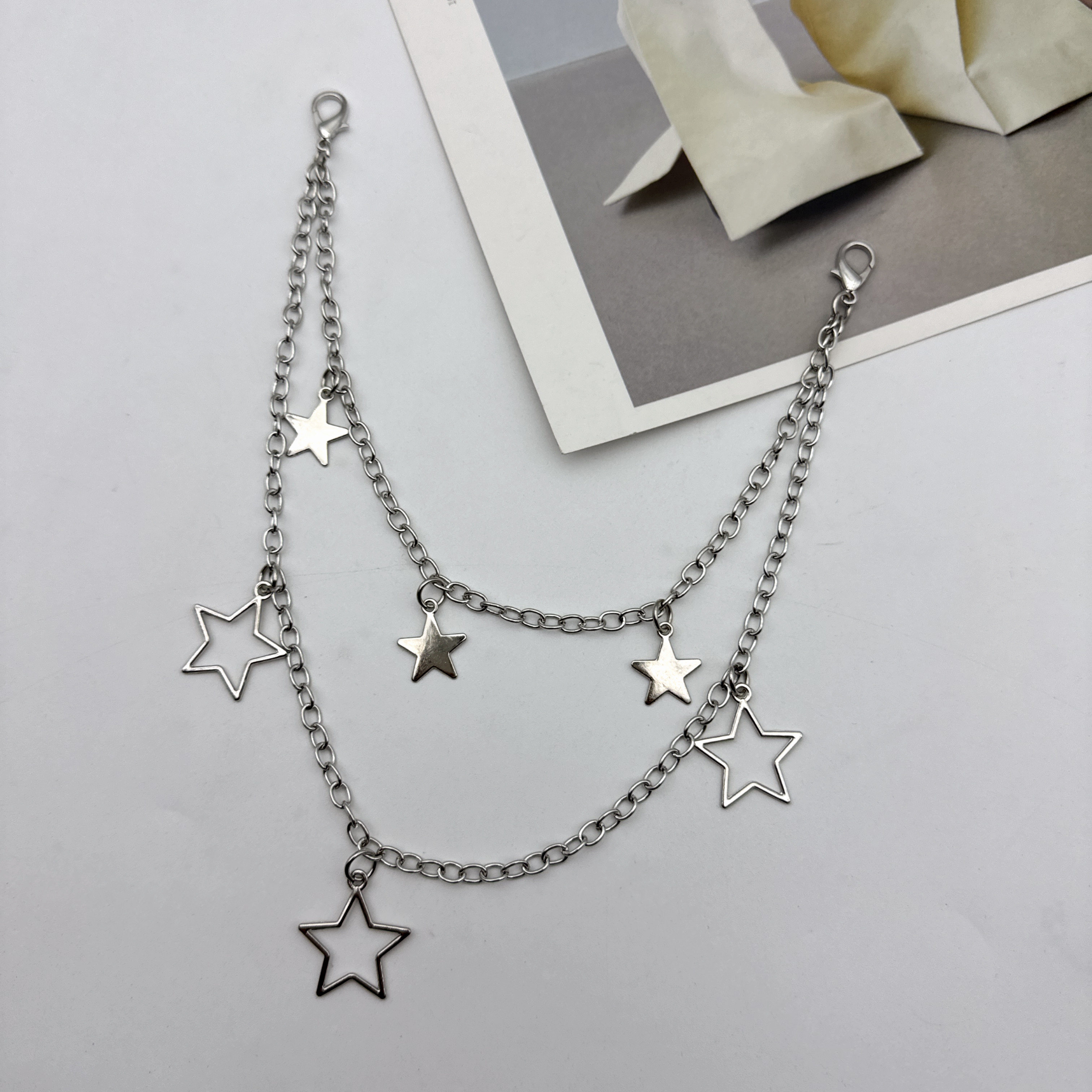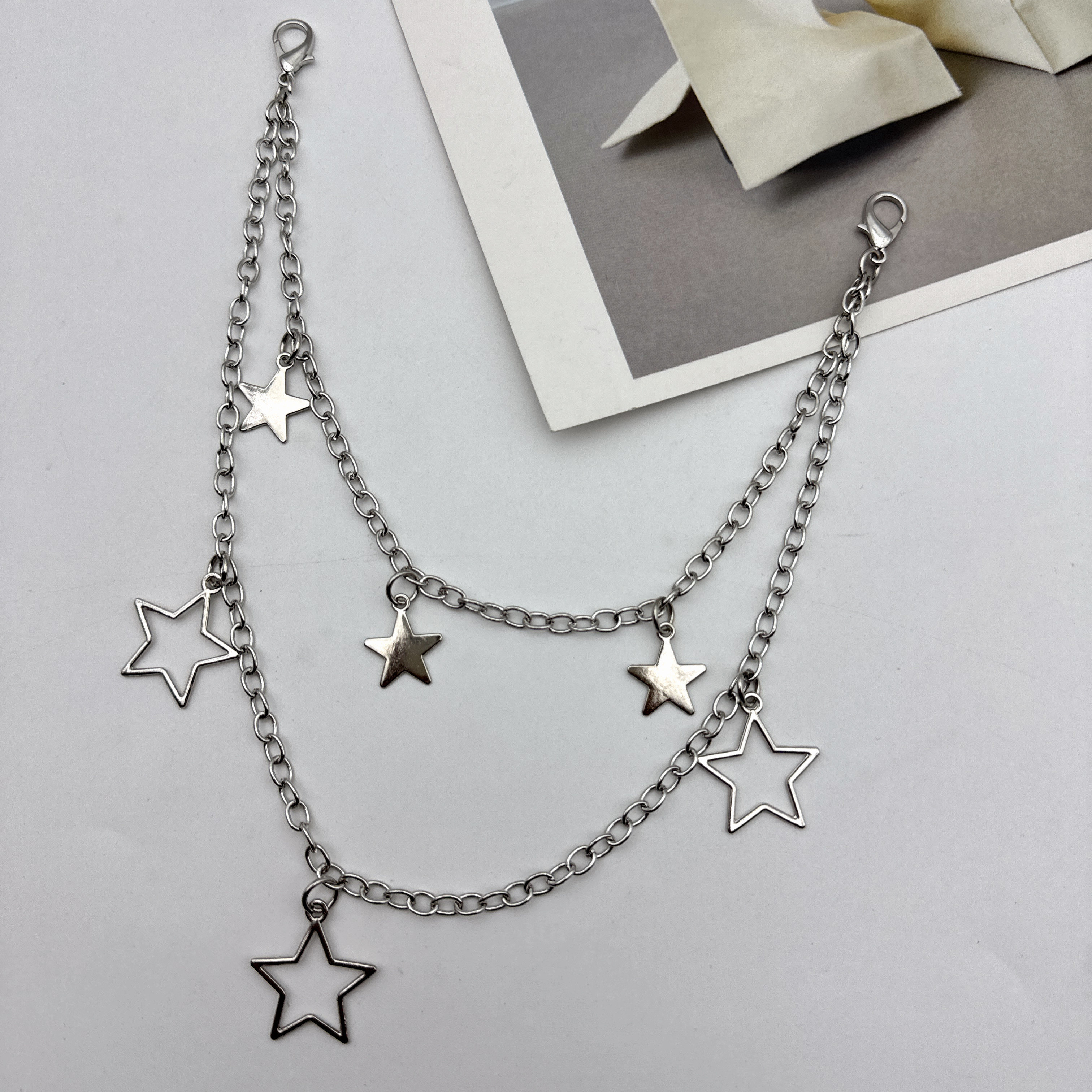 y2k银色星星腰链配裙子装饰金属链条裤链配细腰带腰封连衣裙收腰