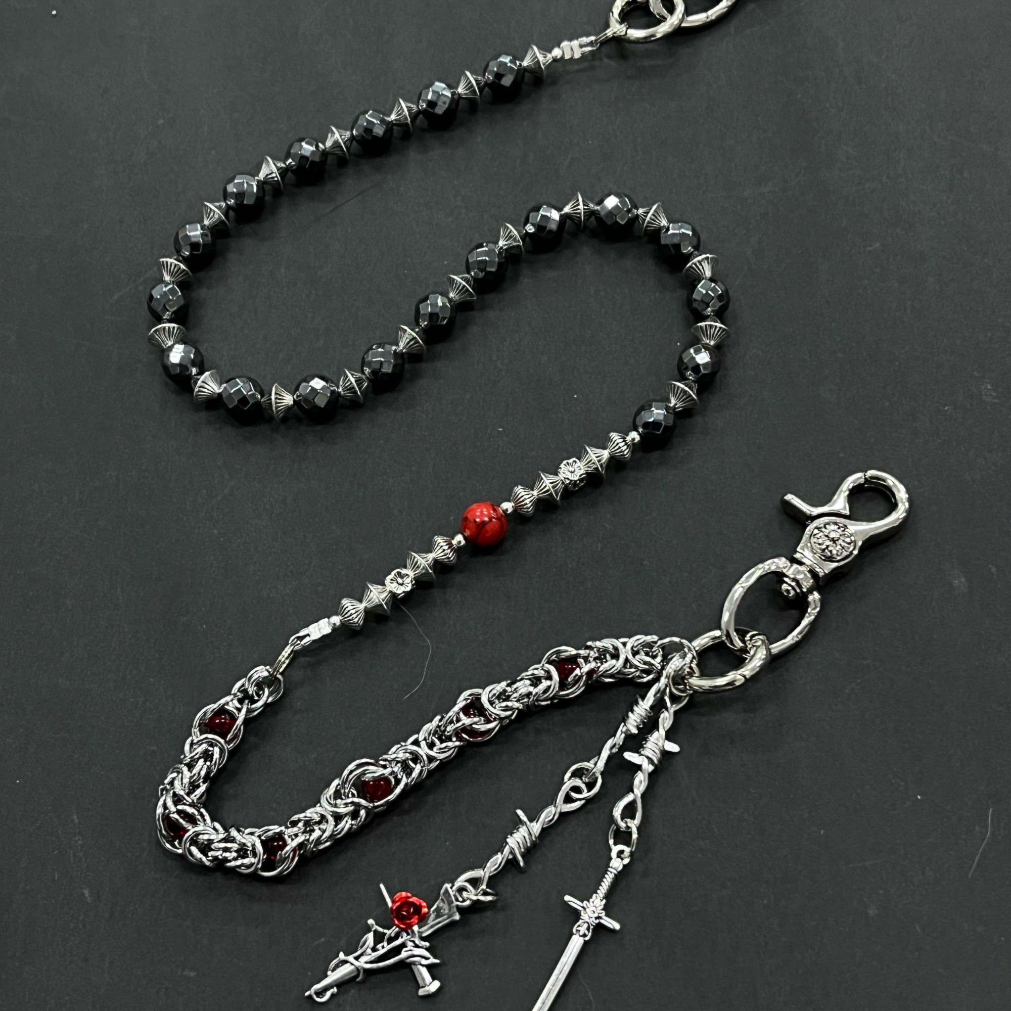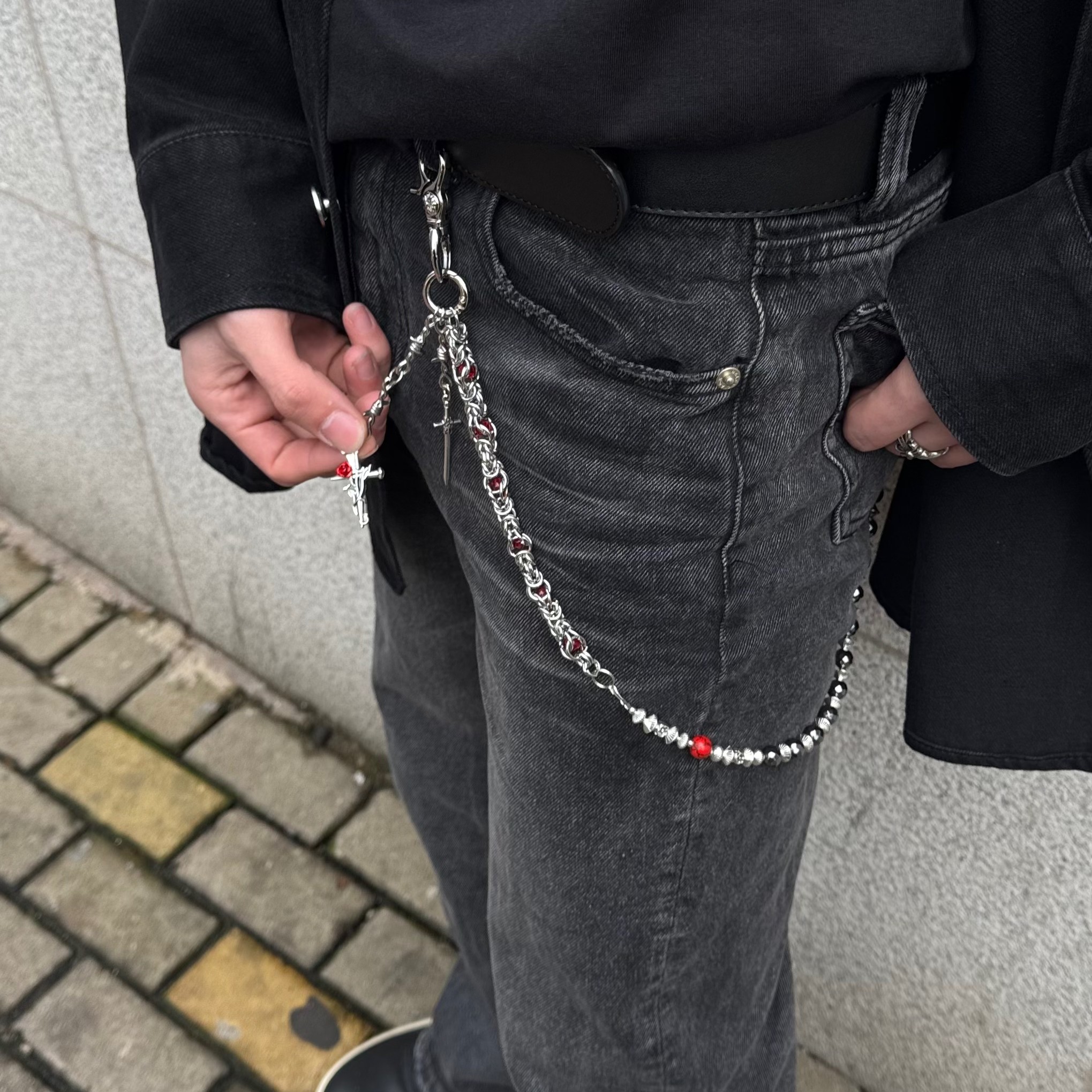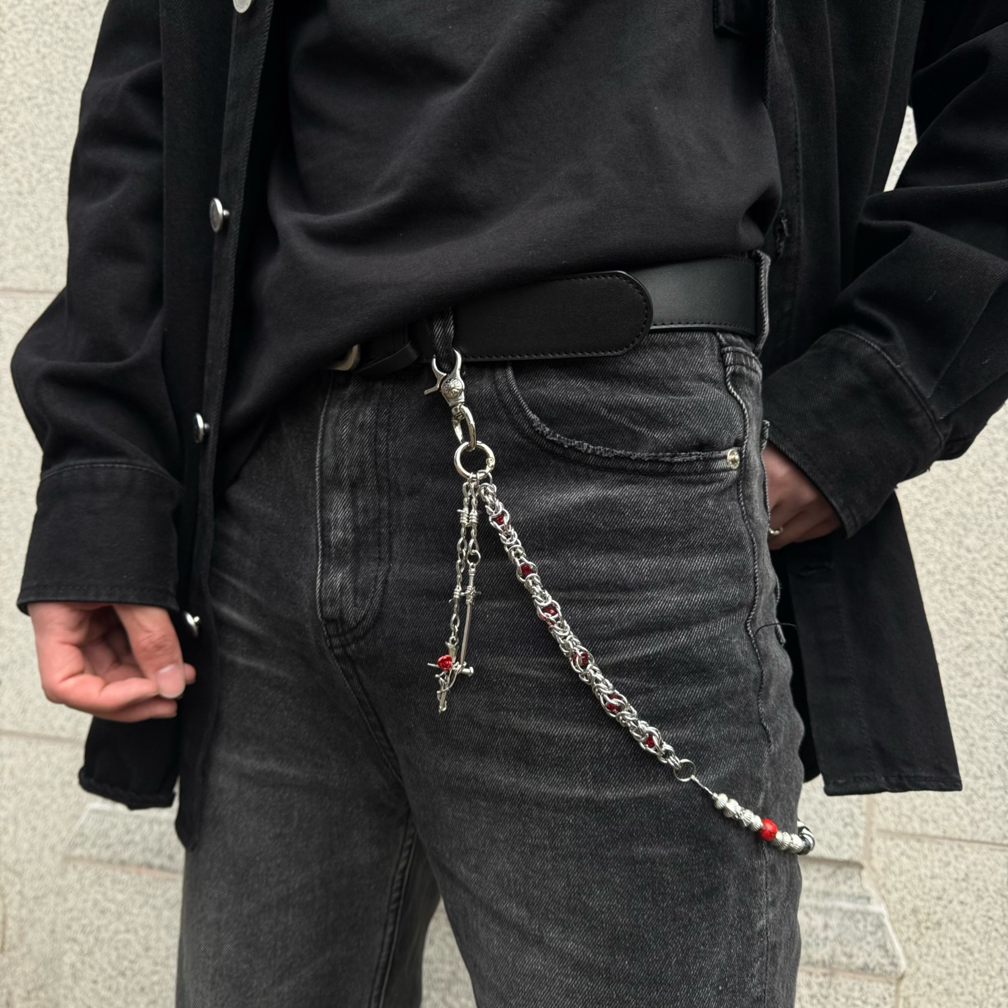 淘宝JUSSING原创玫瑰黑珠龙骨裤链氛围感小众穿搭配饰质感潮腰间挂饰