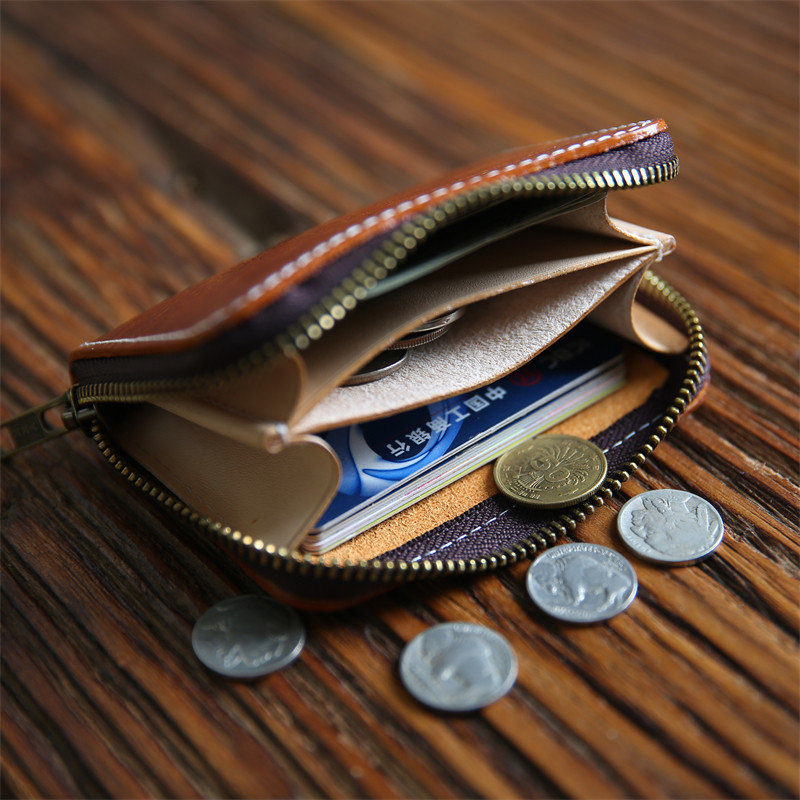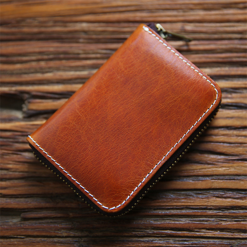 淘宝手工复古植鞣皮小钱包男士头层牛皮拉链短款硬币零钱包真皮小卡包