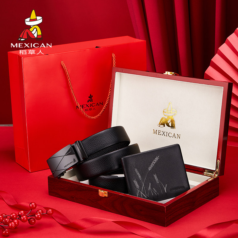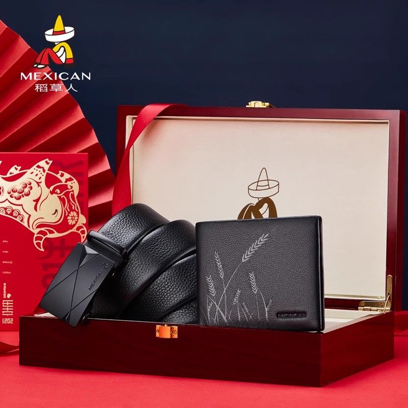 天猫【男士礼物】稻草人钱包男正品真皮2025男士实用皮带套装礼物礼盒