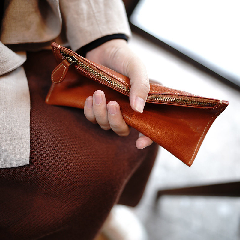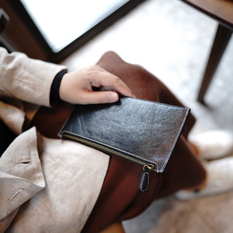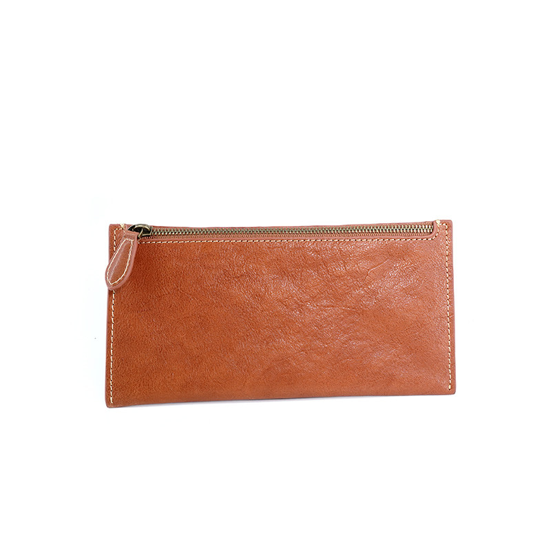 淘宝鹿小姐头植鞣牛皮简约拉链大容量零钱包真皮手机收纳包长款钱包