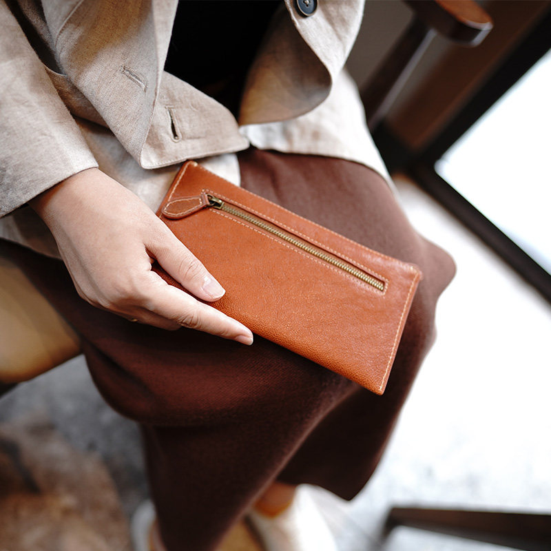 淘日本原单 2025新款女士真皮长款钱包 时尚头层牛皮女款手拿包钱夹