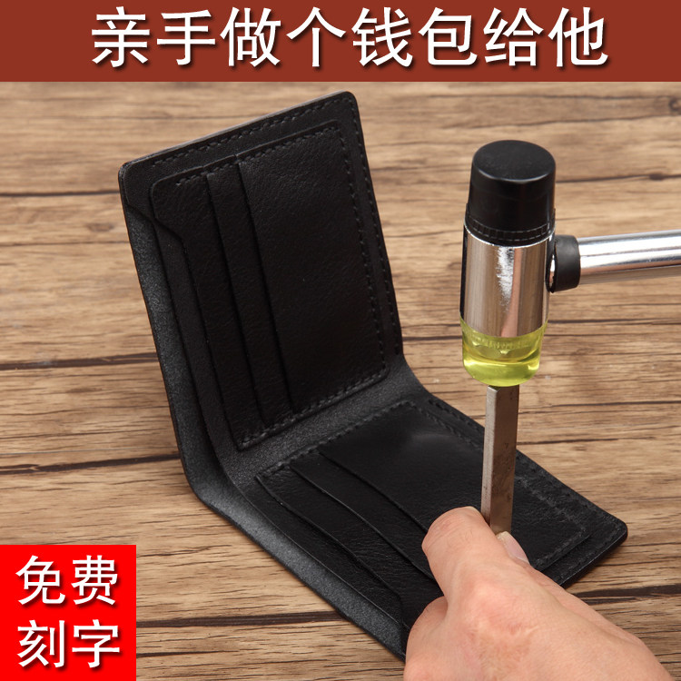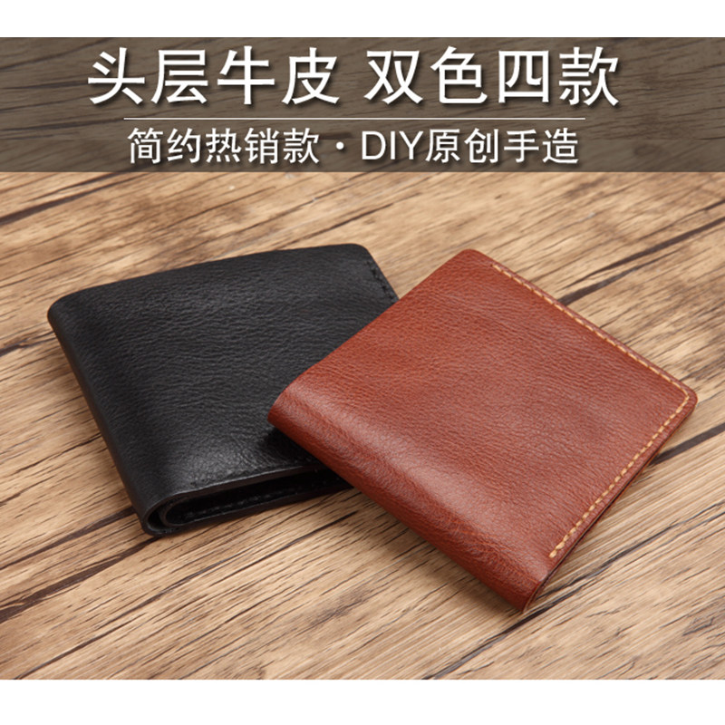 天猫疯皮匠手工自制礼物diy钱包材料包缝制男短款牛皮薄款钱夹银包