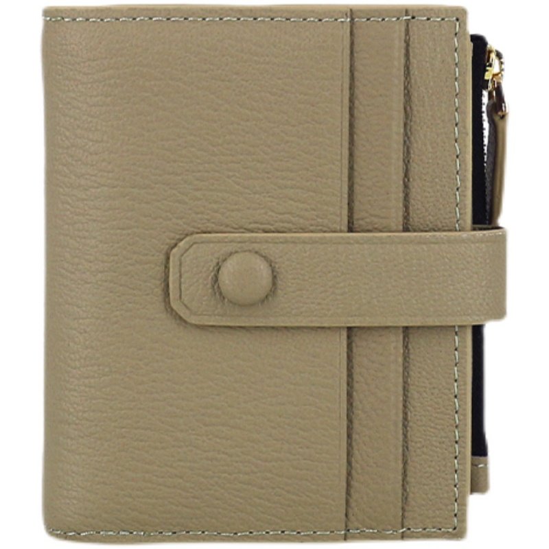 淘宝新品山羊皮钱包女士真皮多卡位搭扣卡包竖款短款简约拉链零钱包薄