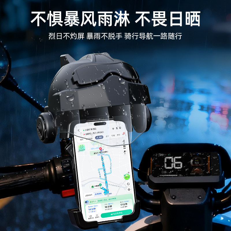 天电动车手机支架遮阳伞可爱防震防水带雨伞固定导航电瓶车手机支架