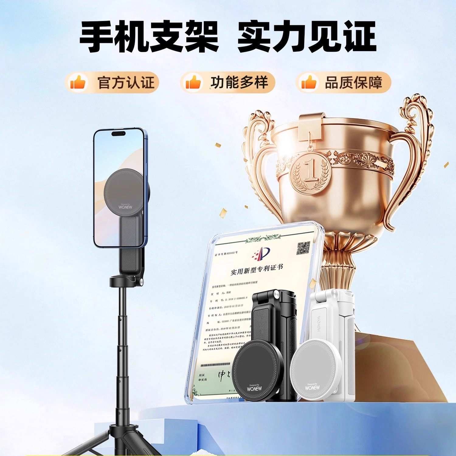 天猫wonew七彩蜗牛磁吸助拍器迷你便携自拍杆三合一手机支架旅行vlog拍摄神器三脚架手持蓝牙拍摄多功能手机架
