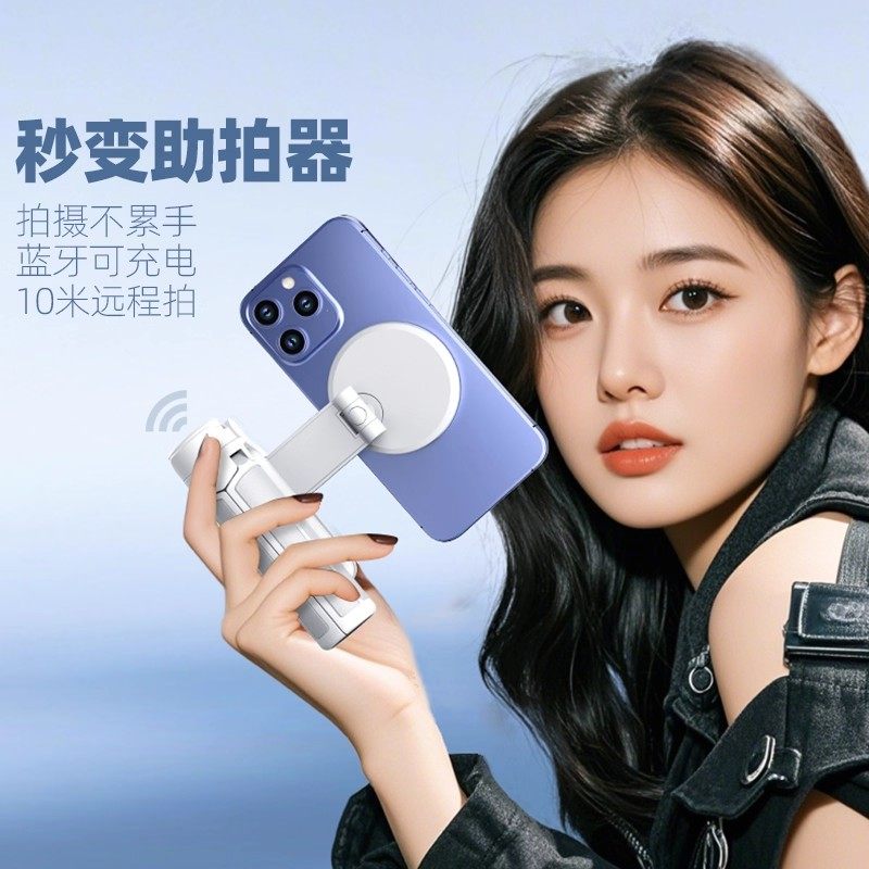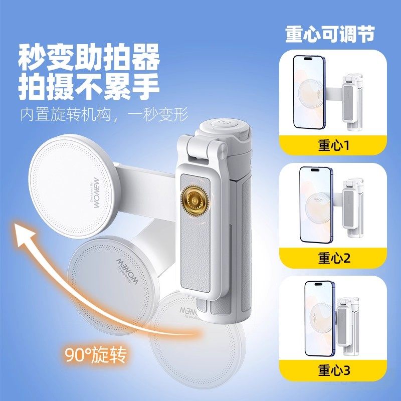 Wonew七彩蜗牛磁吸助拍器是一款集自拍杆、三脚架、手机支架于一体的多功能便携神器,专为旅行、Vlog拍摄和日常记录设计。采用创新磁吸技术,快速吸附手机,稳固防抖,支持360°旋转和高度调节,满足多角度拍摄需求。内置蓝牙遥控,一键连接,轻松实现远程拍照与录像。迷你轻巧设计,可折叠收纳,随身携带无负担。无论是手持自拍、桌面直播,还是户外延时摄影,都能轻松应对。七彩配色时尚吸睛,兼顾实用与颜值,是摄影爱好者和社交达人的理想拍摄伴侣。