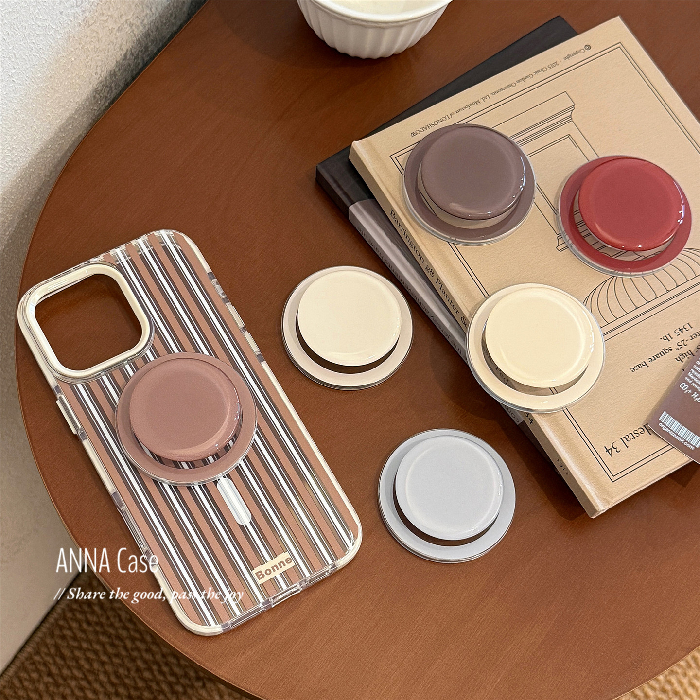 淘宝ANNACASE韩国ins简约冰感光面纯色伸缩磁吸支架适用强磁吸手机壳