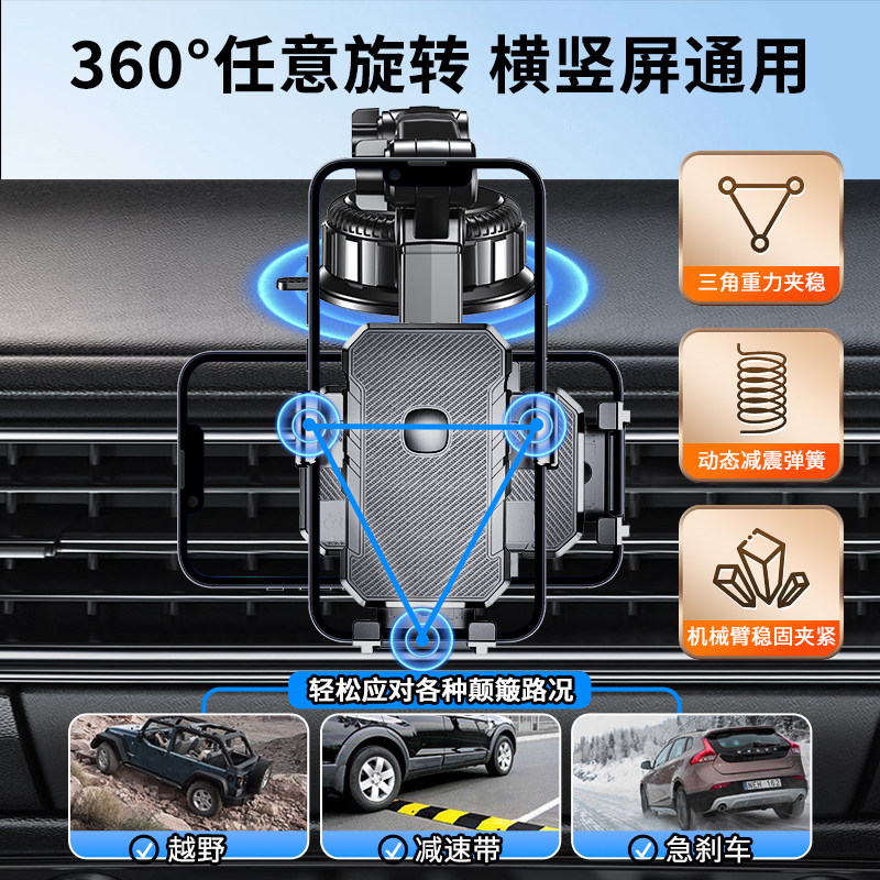 2025年新款手机车载支架采用强力吸盘设计,稳固吸附于中控台或挡风玻璃,适配轿车、SUV及大货车等多种车型。支架配备360°可旋转球头与多角度调节臂,支持横竖屏自由切换,满足导航、通话、视频等多场景需求。内置高弹性防震硅胶与金属加固关节,有效缓解颠簸路面带来的震动,确保行车中手机稳如磐石。兼容4.7-7英寸手机,一键锁紧设计操作便捷,不遮挡视线,安全合规。升级防滑底座与耐高温材质,适应极端天气,是长途驾驶、网约车及物流运输的理想之选。