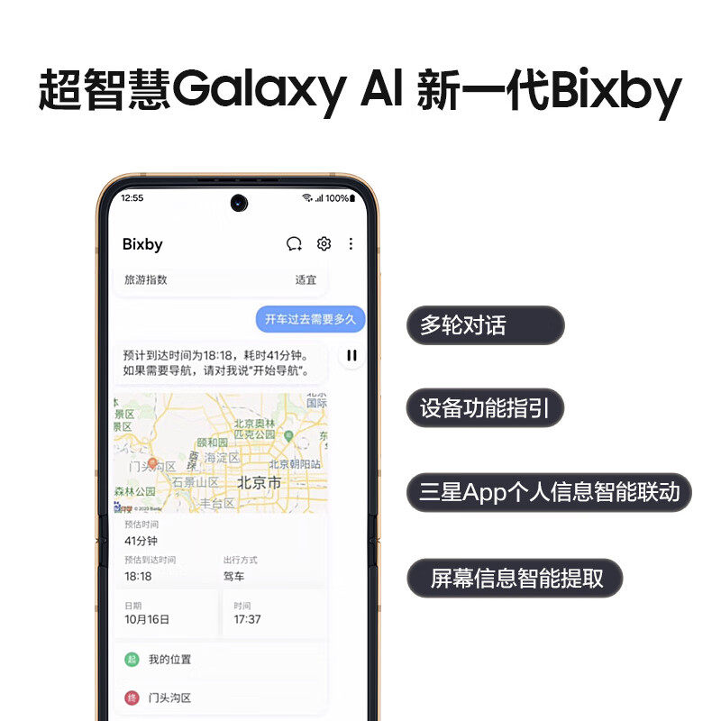天猫【自营】三星Samsung 心系天下 W25 Flip AI手机 大视野智能外屏 5000万像素 拍照手机 12GB+512GB 陶瓷黑